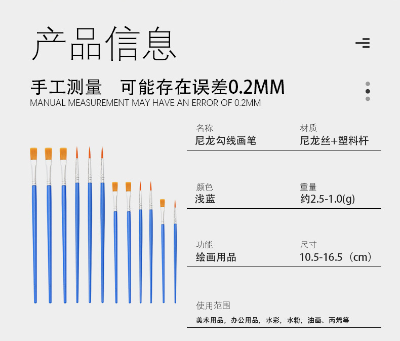 石膏人形デジタル油絵絵筆極細絵筆子供落書きナイロン絵筆平頭絵筆水彩
