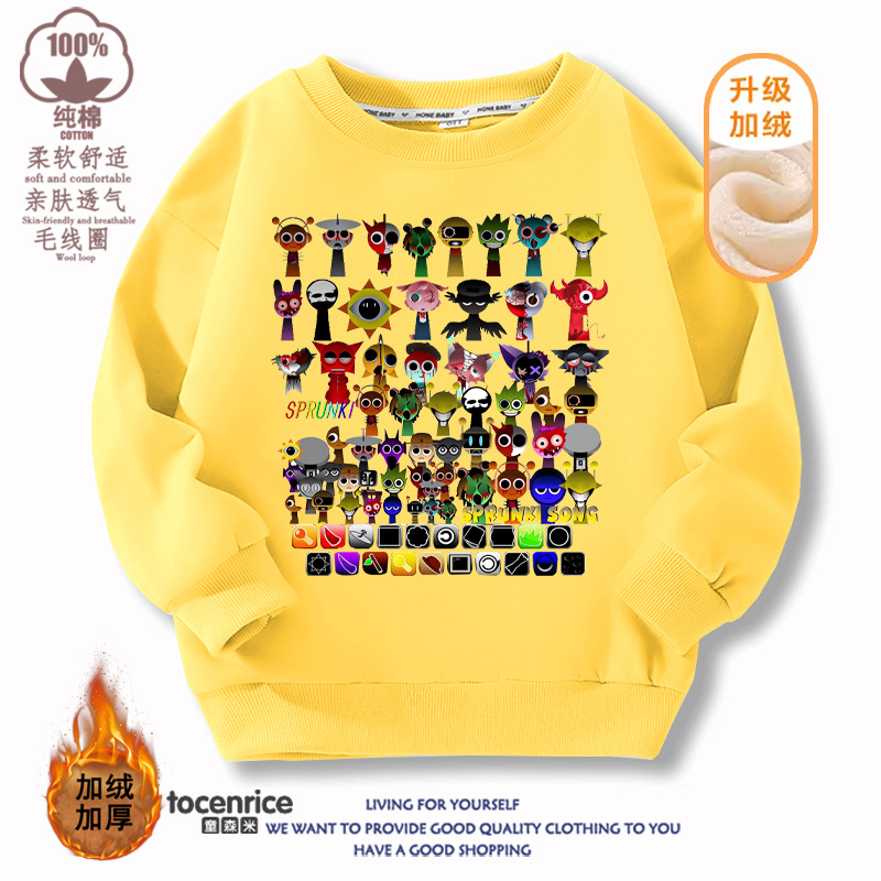 リズムの箱の服の子供の春秋の冬のベルベットの丸首のパーカーの男女の子供服の上着の漫画のレジャーの潮