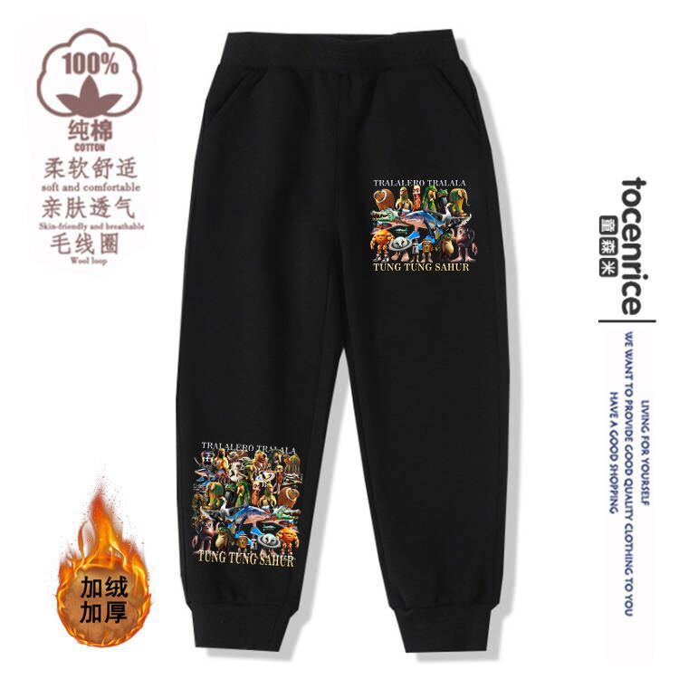 木棍人儿童春秋休闲卫裤抽象国外山海经男童冬装加绒长裤束脚裤子