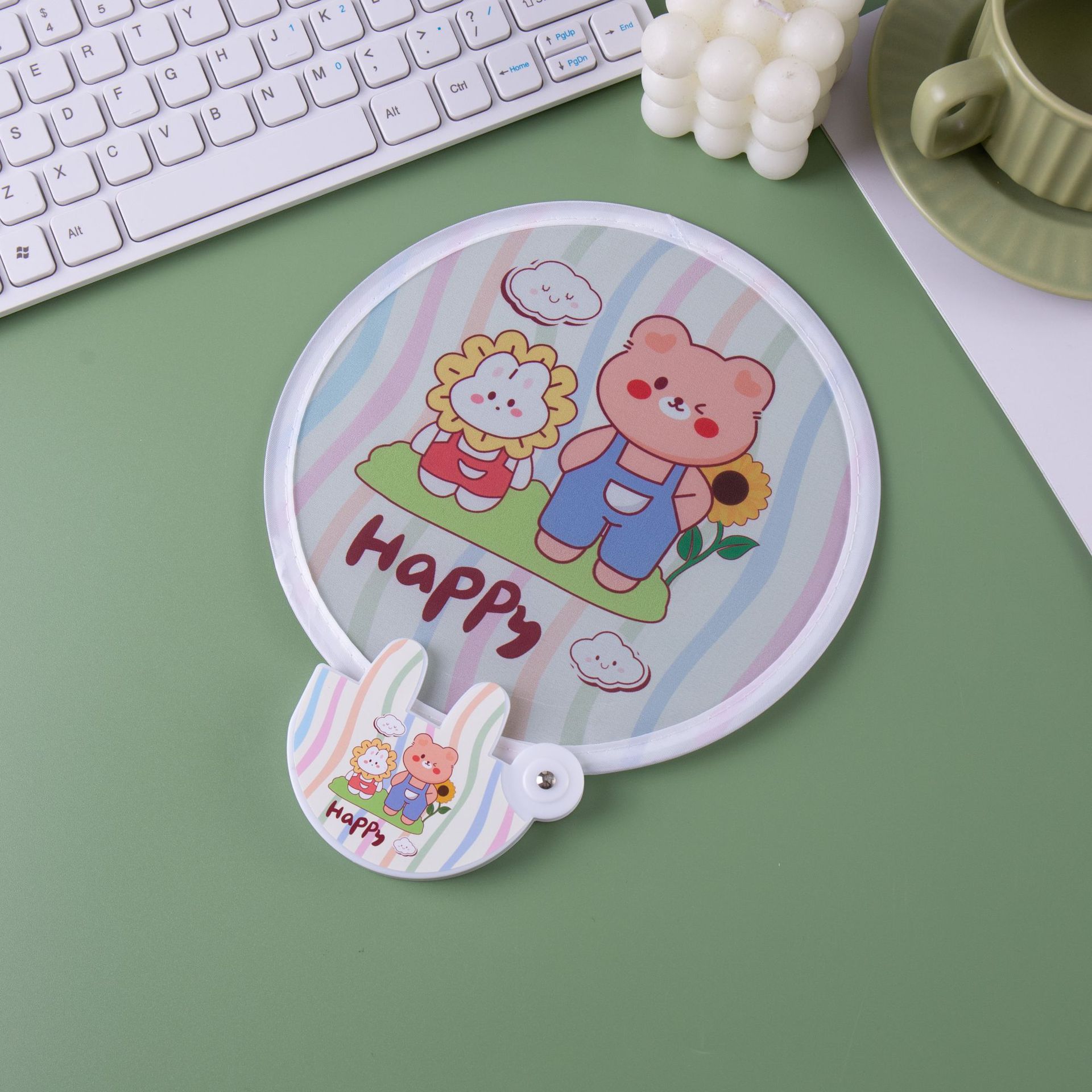 新商品のフリスビー扇子かわいいアニメ宣伝折りたたみ扇子パーティー団扇携帯ミニ扇子現物卸売り