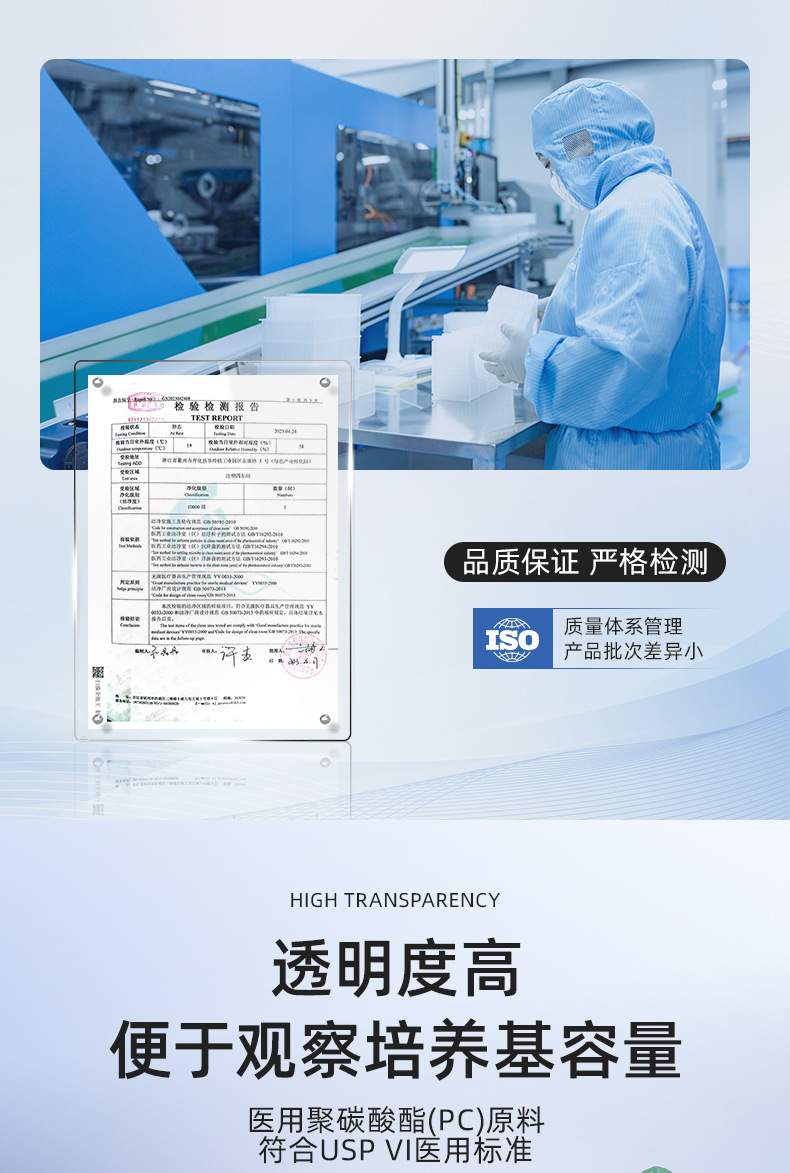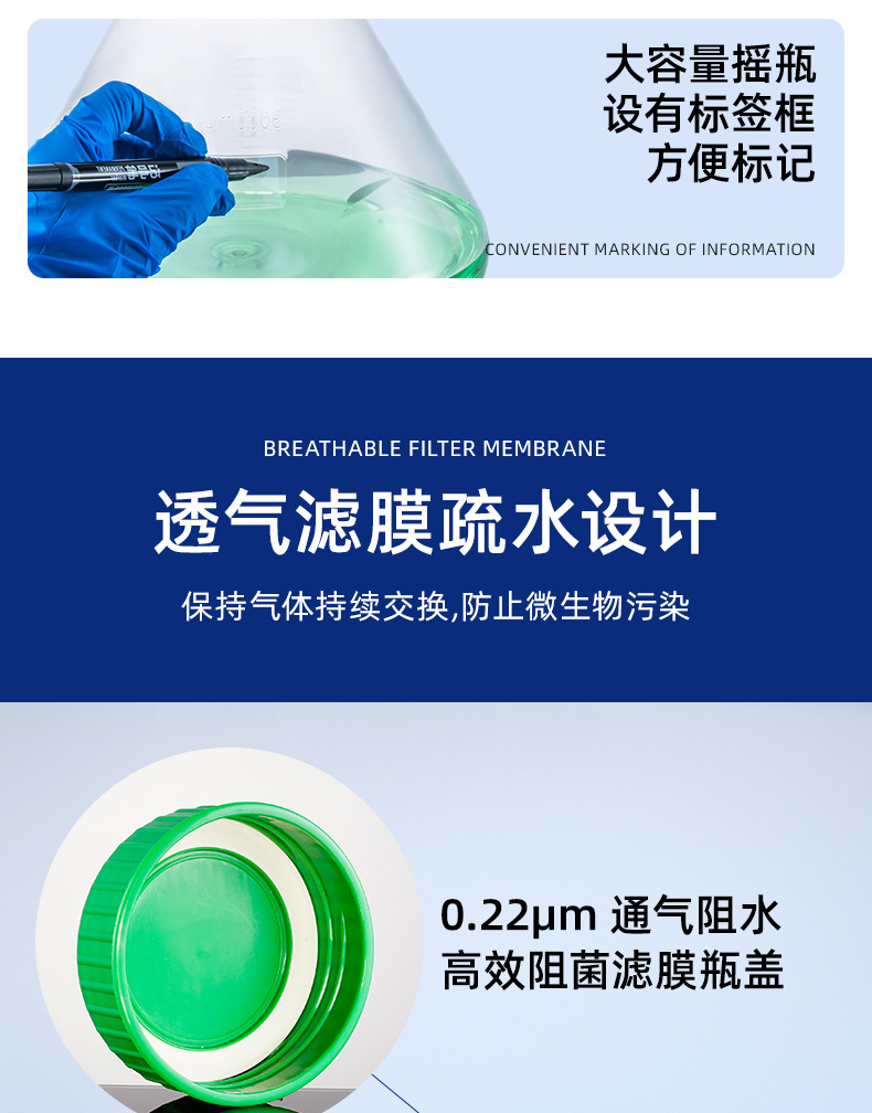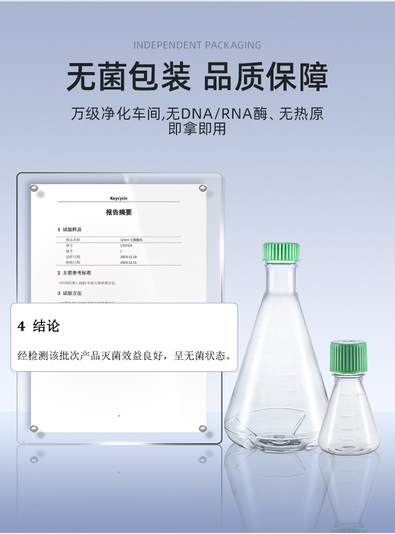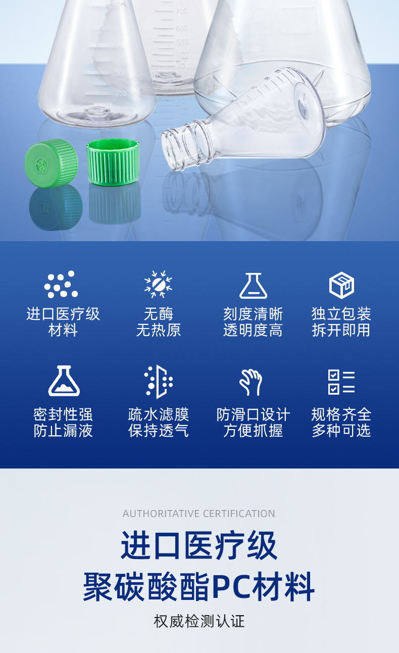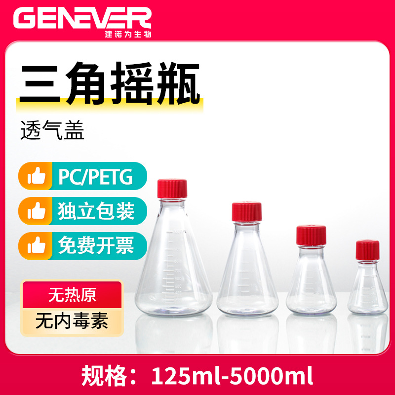 建诺为125ml250ml塑料锥形瓶PC PETG透气盖带刻度无菌三角摇瓶