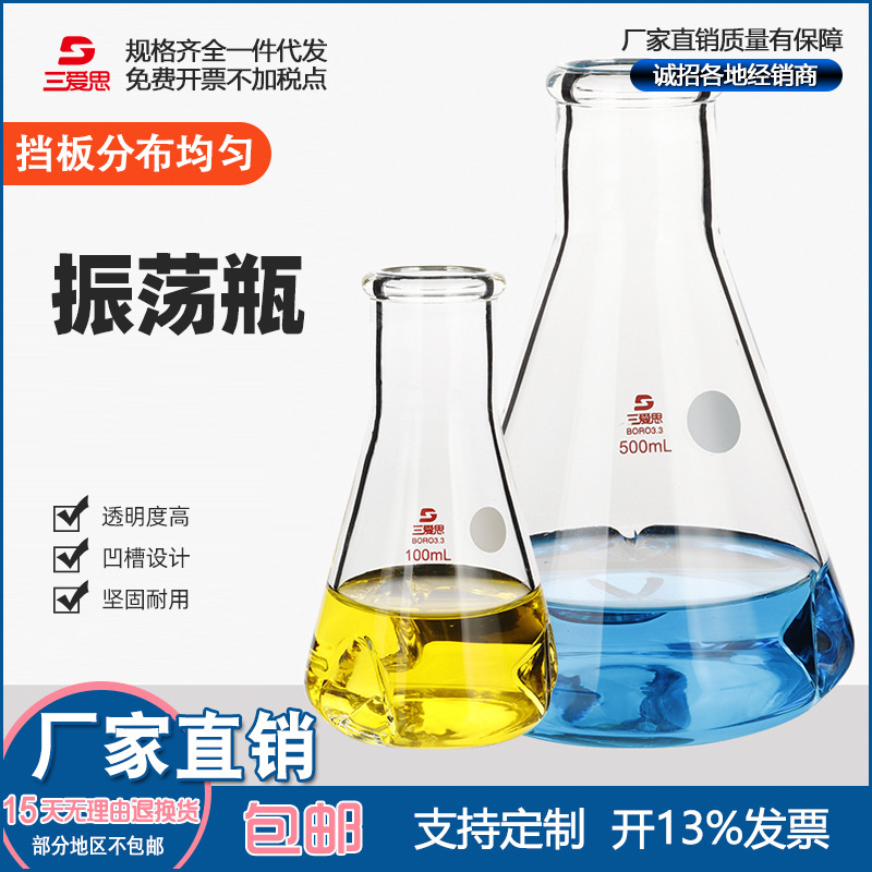 フラップ付き三角フラスコ揺菌瓶三凹揺瓶ガラス錐形瓶円錐振動瓶実験室揺瓶