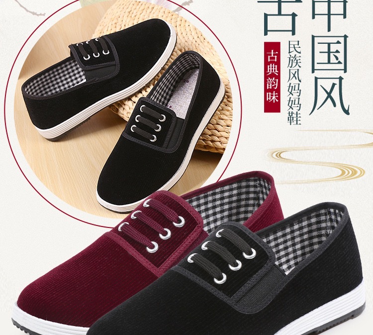 本物の牛筋底の古い北京布靴、婦人靴、平底中高年母親の靴、軽くてシンプルな高齢者の布靴
