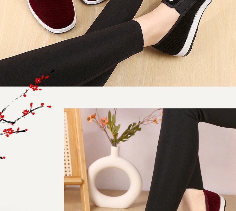 秋の古い北京布靴、中高年の女性のウォーキングシューズ、厚い腱底のスリッポン軽量メッシュカジュアル布靴