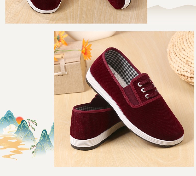 男性と女性の布靴、古い北京布靴、平底コーデュロイ、滑り止め、耐摩耗性、通気性、滑り止め、道教練習靴、太極拳靴
