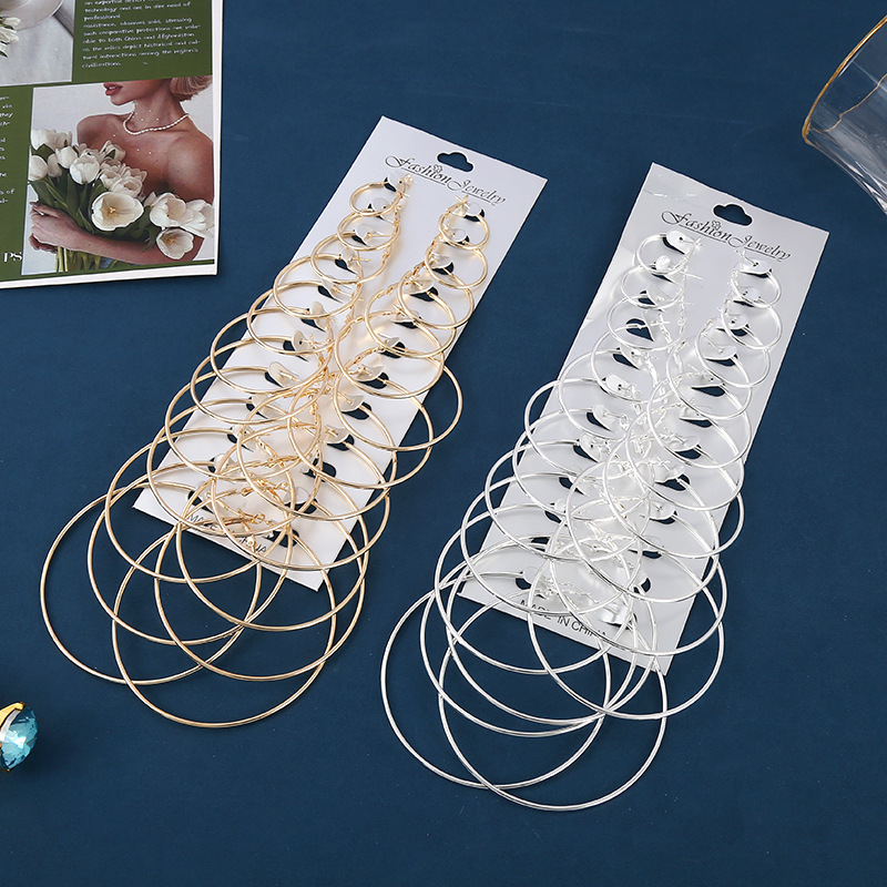 欧米の百合のイヤリングの女性はやせているネットの赤いネットの1セットの6対の光沢のcリングの異なっている大きさの耳の輪の組み合わせのシンプルなファッションを現します。