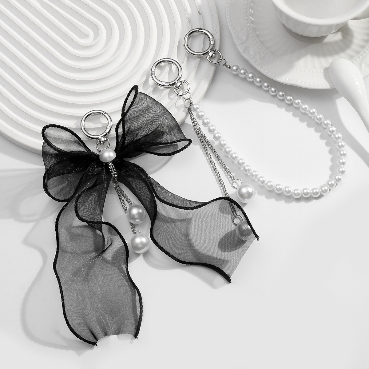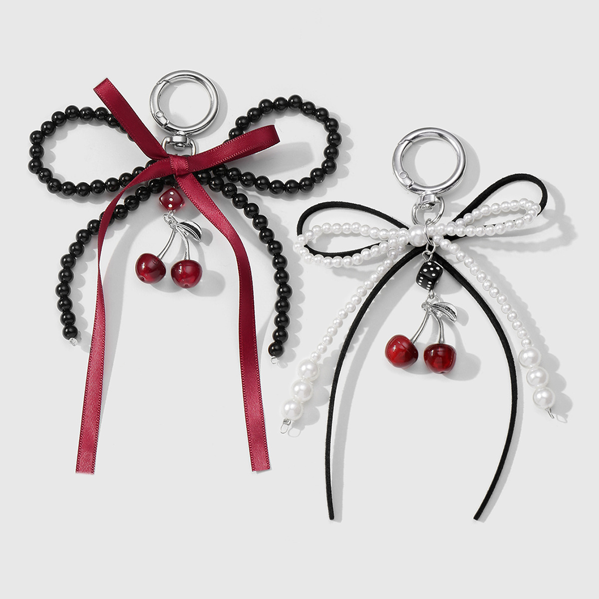 新しい y2k パーソナライズされたシンプルでハイエンドの黒と白のレースのリボン模擬チェリーペンダント DIY バッグペンダント