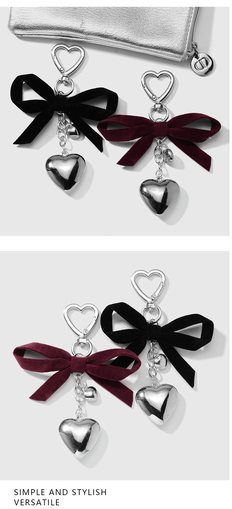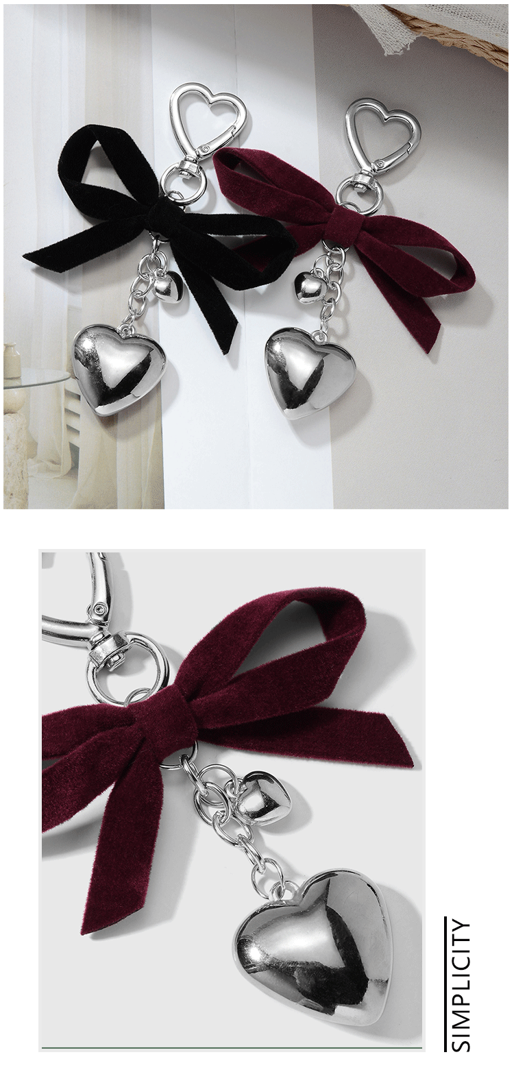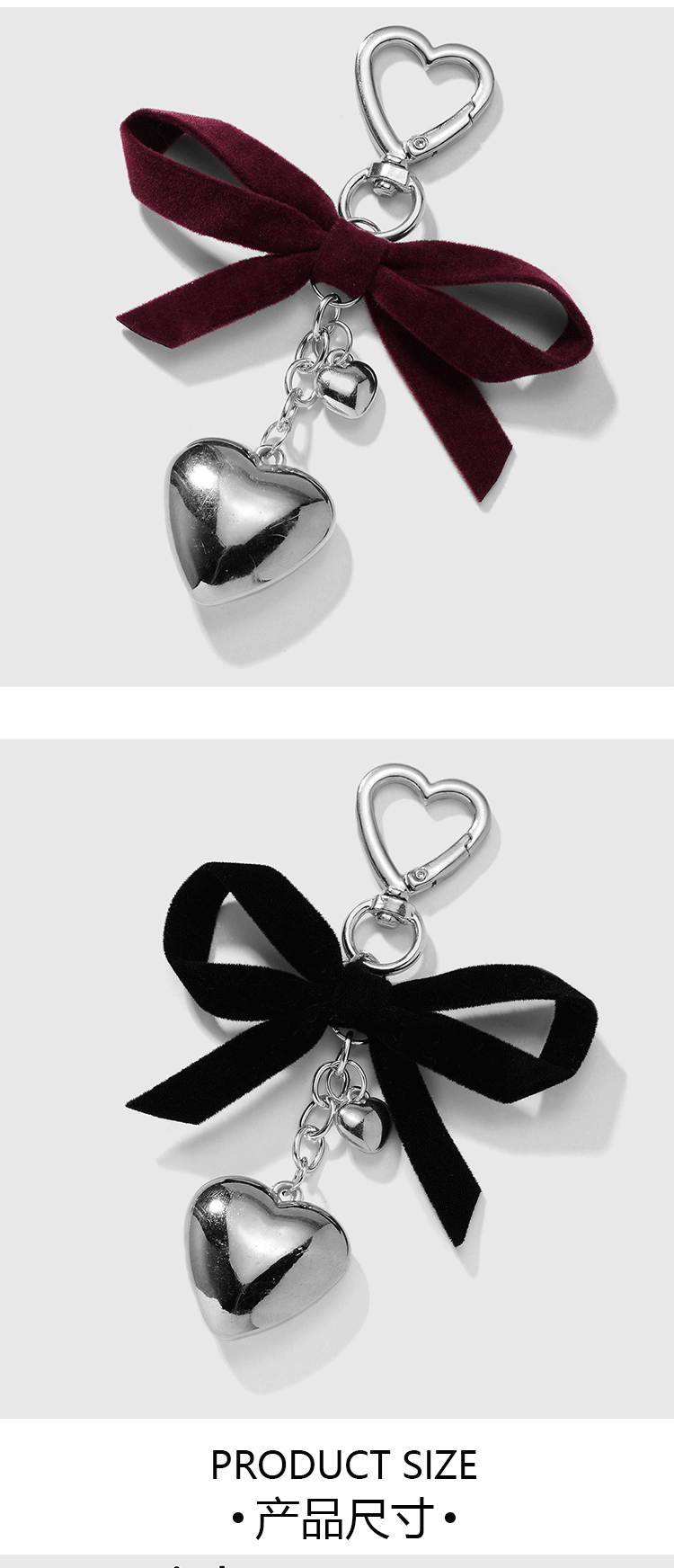 クロスボーダー爆金y 2kファッション個性レトロ暗黒風銀色チェーンのリボンの愛のキーホルダー