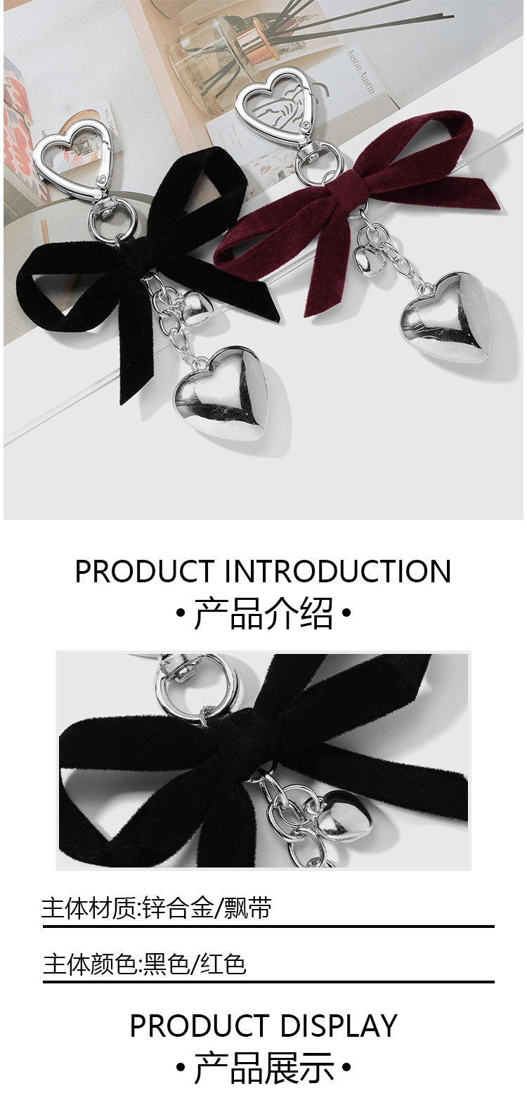 ブラックリボンラブキーホルダー1個,赤いリボンの愛のキーホルダー 1 個