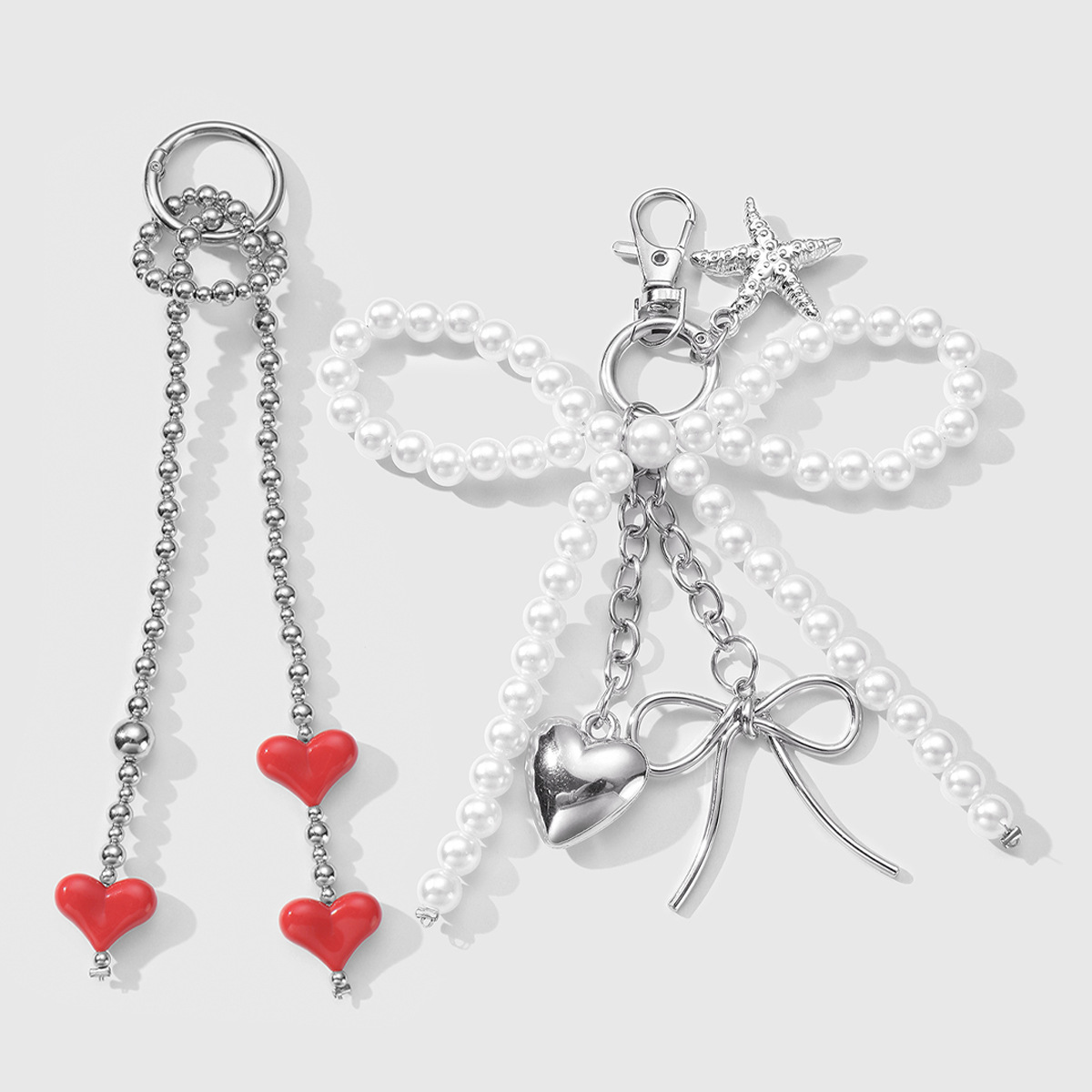 新しい y2k シンプルなファッションライト高級模造真珠 CCB ビーズリボン愛ヒトデ DIY キーホルダーペンダント