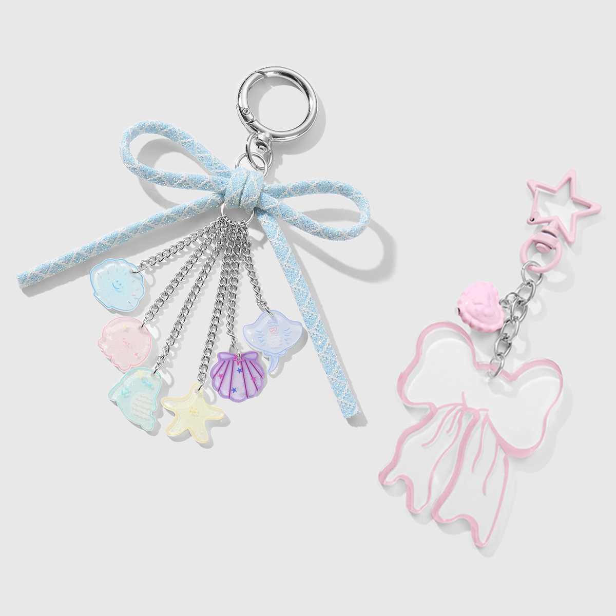 新款ins清新可爱简约海洋系列亚克力亮闪蝴蝶结海洋生物DIY钥匙扣