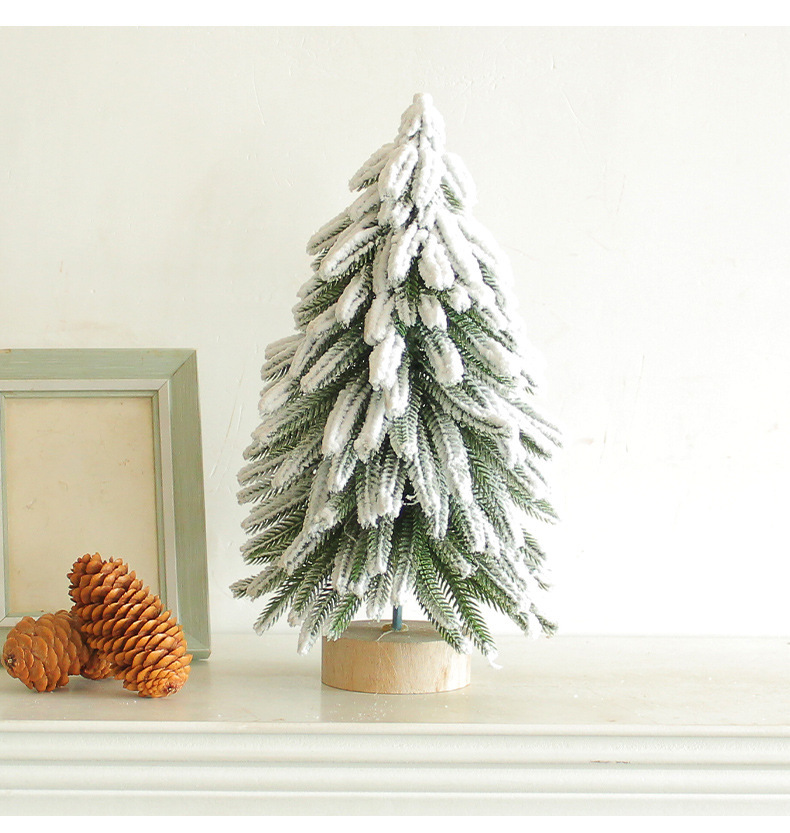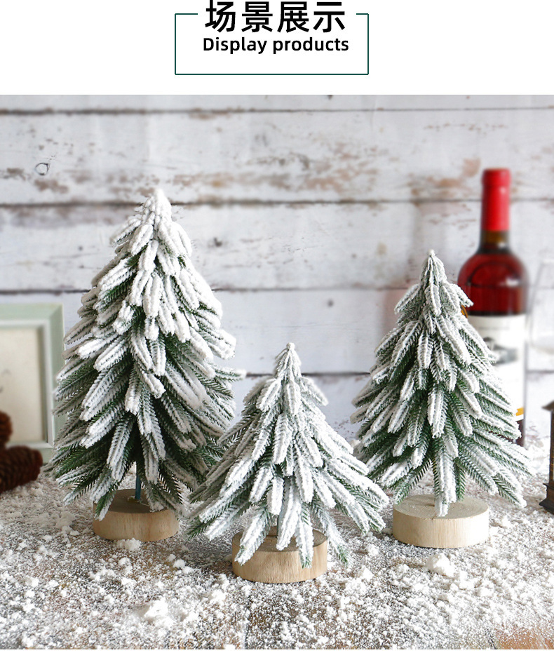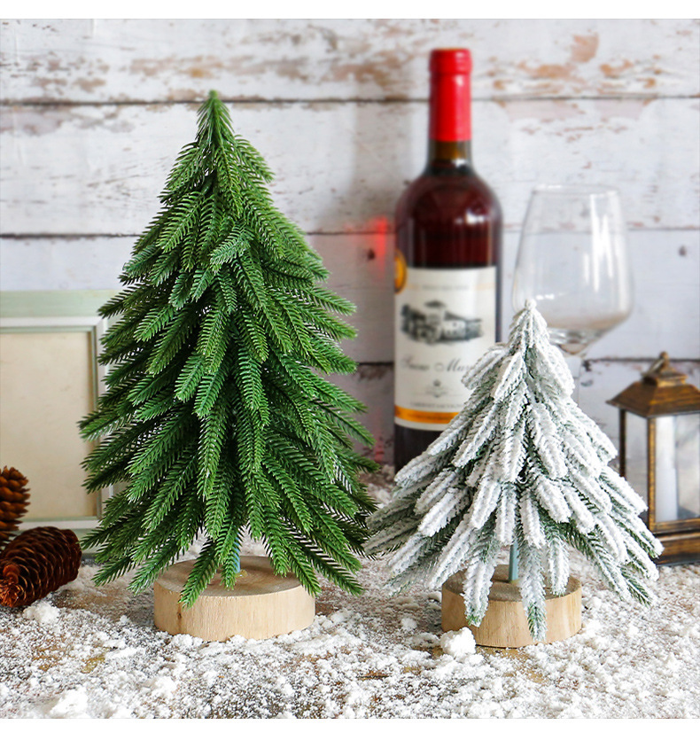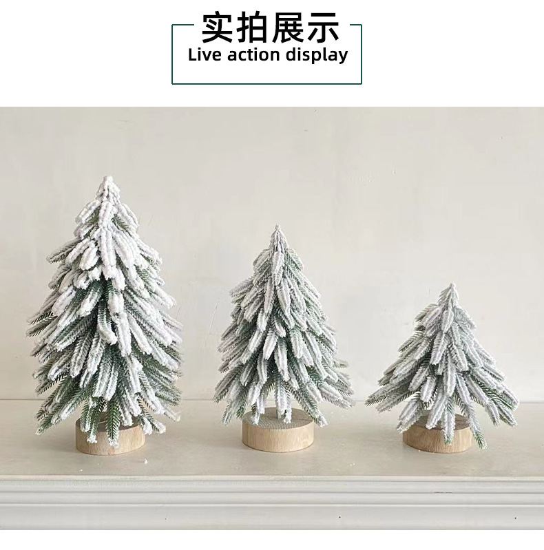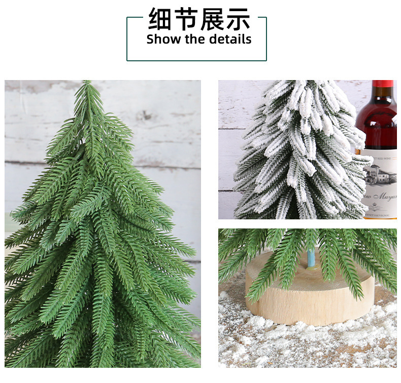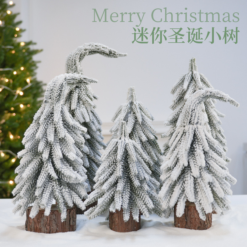 纵鸿圆木底圣诞树摆件亚马逊圣诞装饰品植绒圣诞小树雪松装饰树