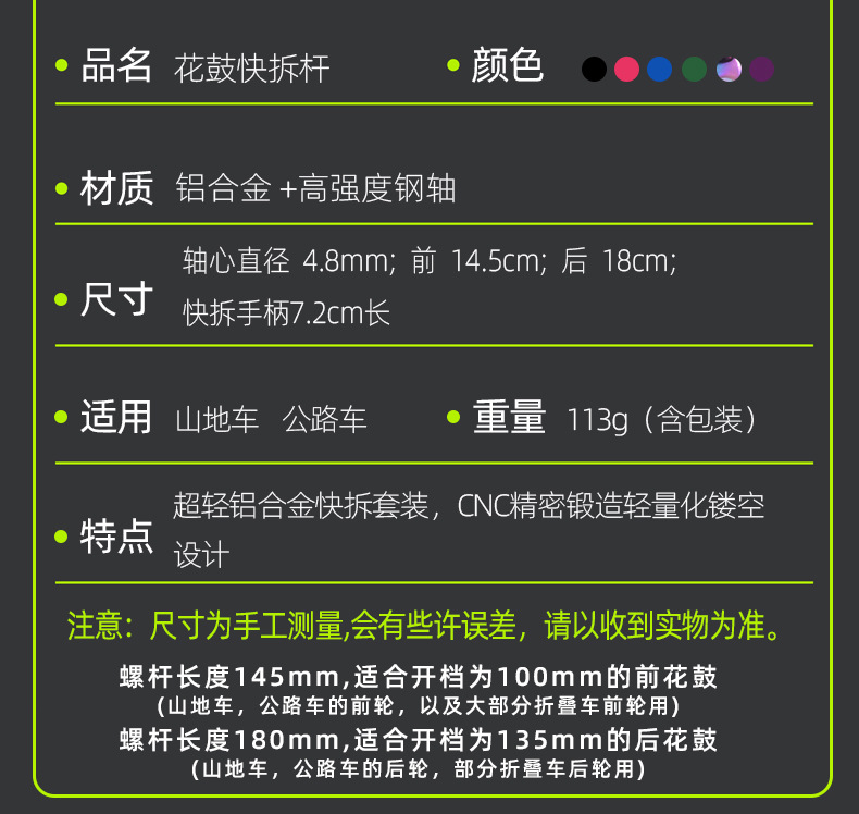 マウンテンバイクの花鼓速開レバー盗難防止道路車の前後の軸心棒軽量折り畳みアルミ合金ねじ棒