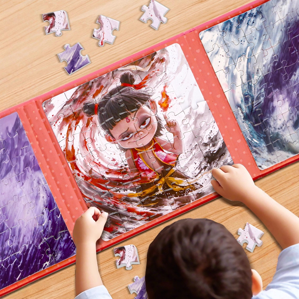正版哪咤魔童闹海磁力拼图-6岁儿童益智男女孩磁吸平图玩具书童