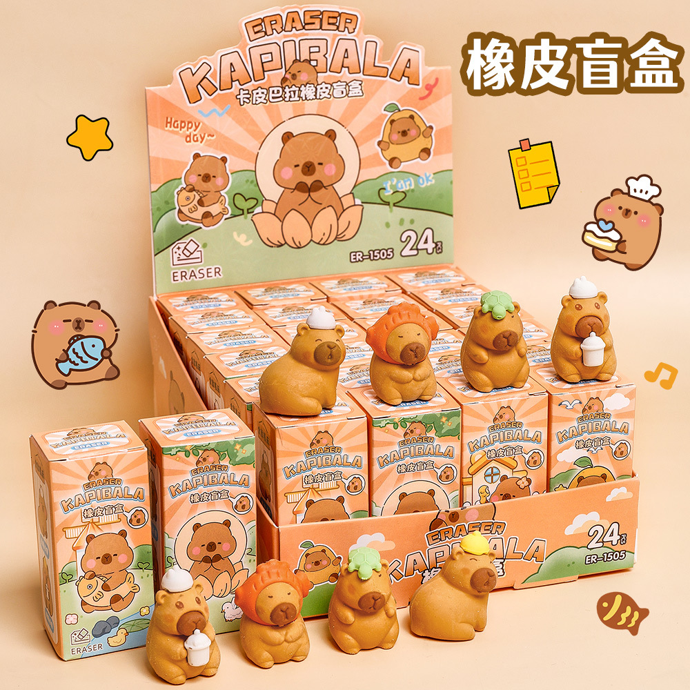 水豚盲盒立体橡皮擦小学生卡通橡皮奖品高颜值卡皮巴拉套装小礼物