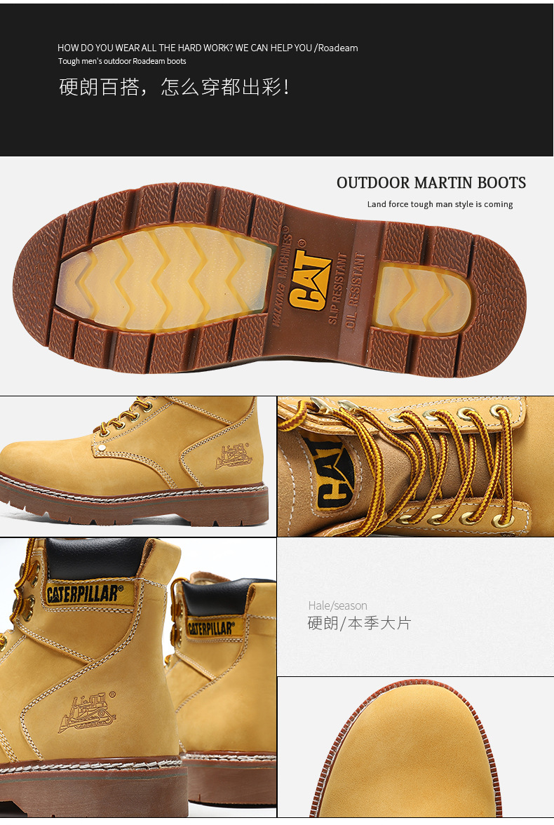 海外貿易CAT越境大型サイズ秋用カップル向け本革アウトドアカジュアル厚底ワークブーツ越境で人気販売中