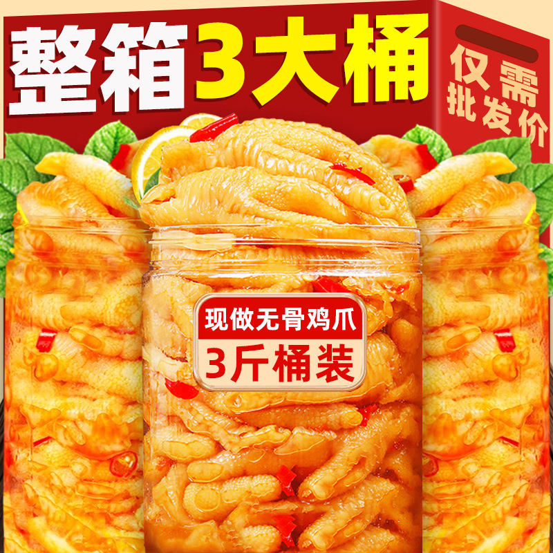 去骨凤爪官方旗舰店泡椒5斤脱骨大分量商用无骨鸡爪柠檬酸辣