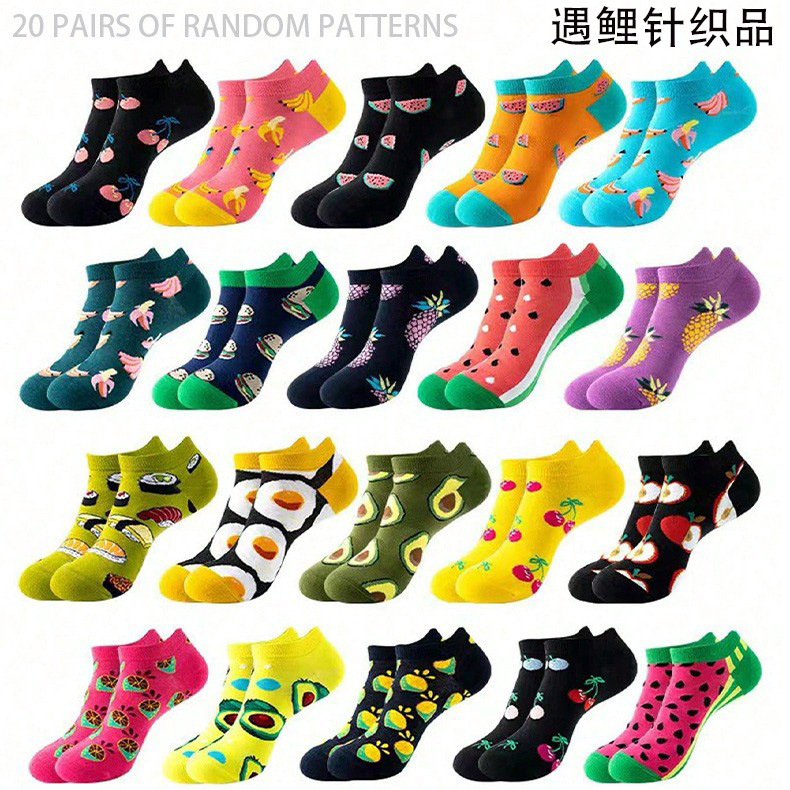 Amazon 大人用トレンディソックス、男性と女性用のトレンディソックス、吸汗性カラートレンディショートソックス、卸売フルーツ柄ショートソックス