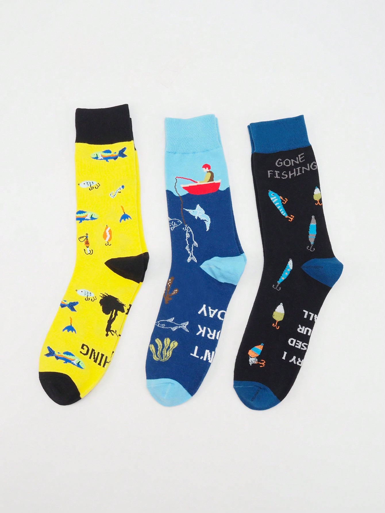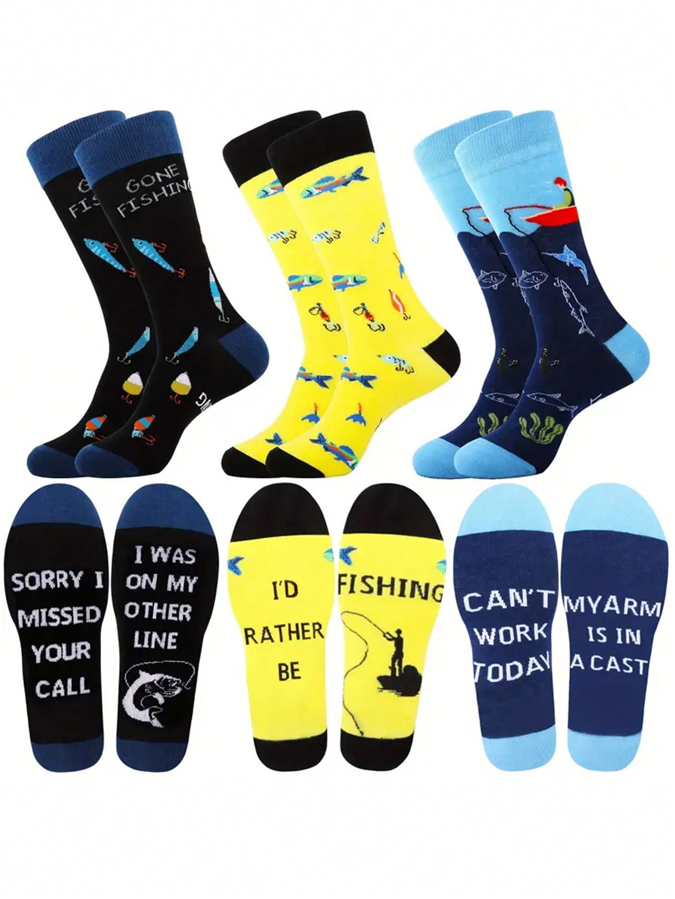 跨境钓鱼爱好者男士袜子休闲舒适透气卡通外贸男袜长筒动物现货发