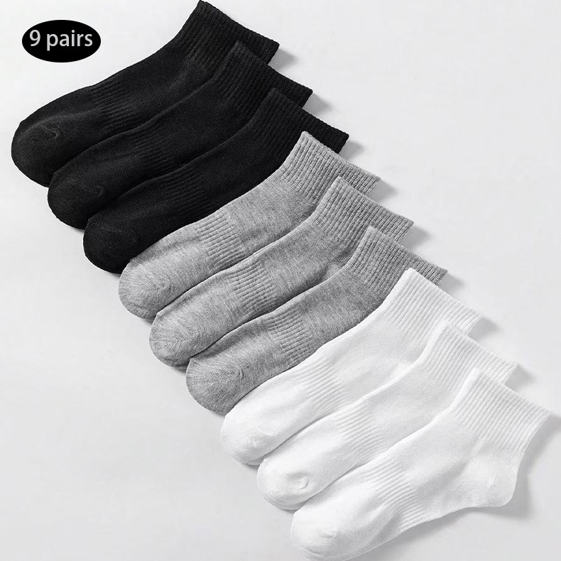 靴下 9 足白グレー黒ロングソックス春夏イントレンド無地日本製ミッドカーフソックス男性用吸汗性