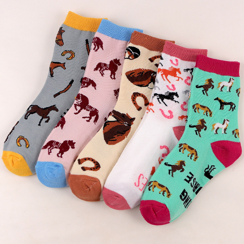 袜子女中筒袜ins欧美街头嘻哈韩系个性马图案秋冬潮袜休闲健身袜