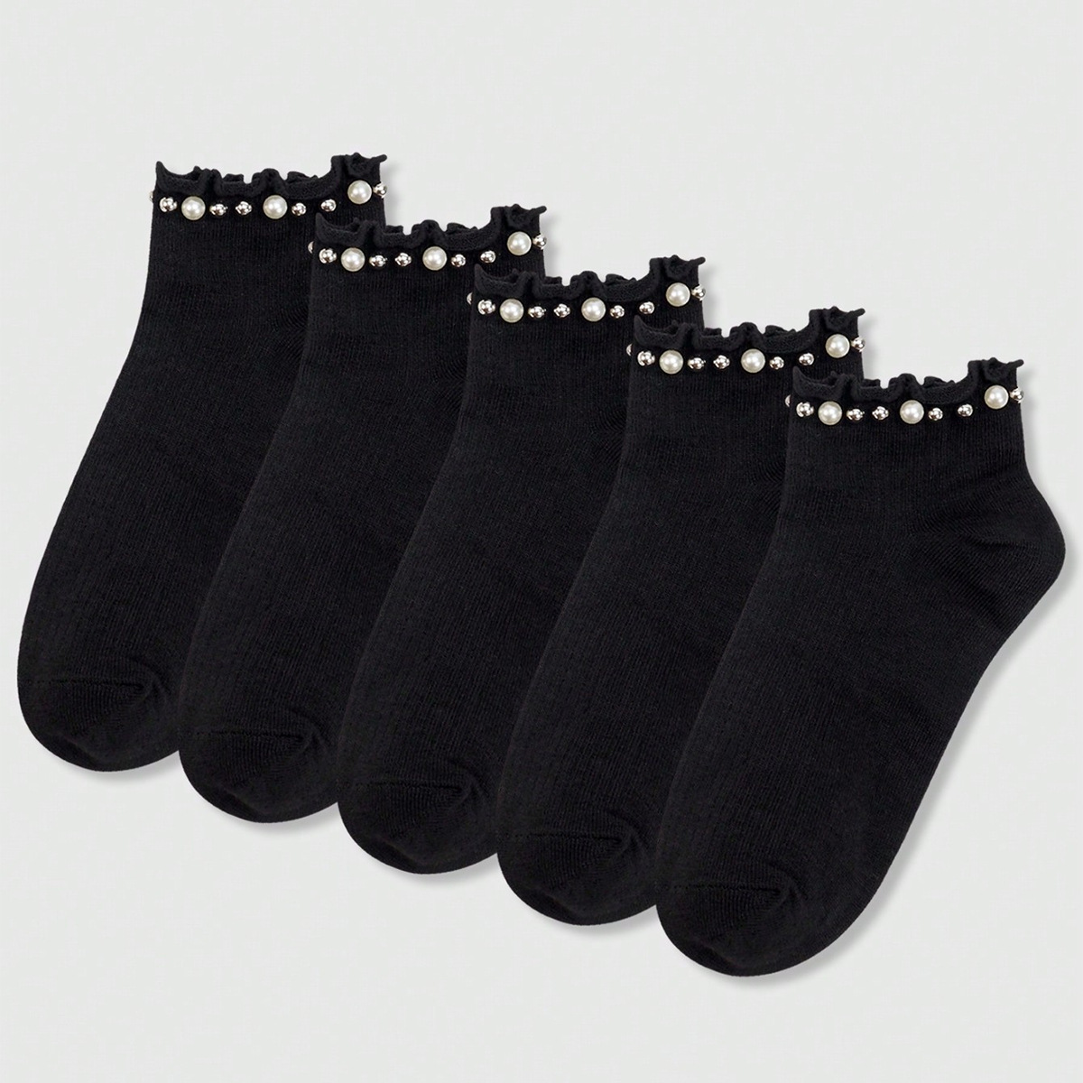 秋冬新作 日本風 ウェーブ縁 ビーズ飾り レディース 無地 ミドル丈ソックス 韓国風 カジュアル パール ヴィンテージ トレンドソックス