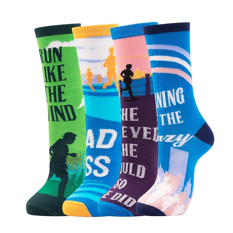 跨境亚马逊绿色旗帜高尔夫英文脚底字母图案趣味礼物中筒袜子运动