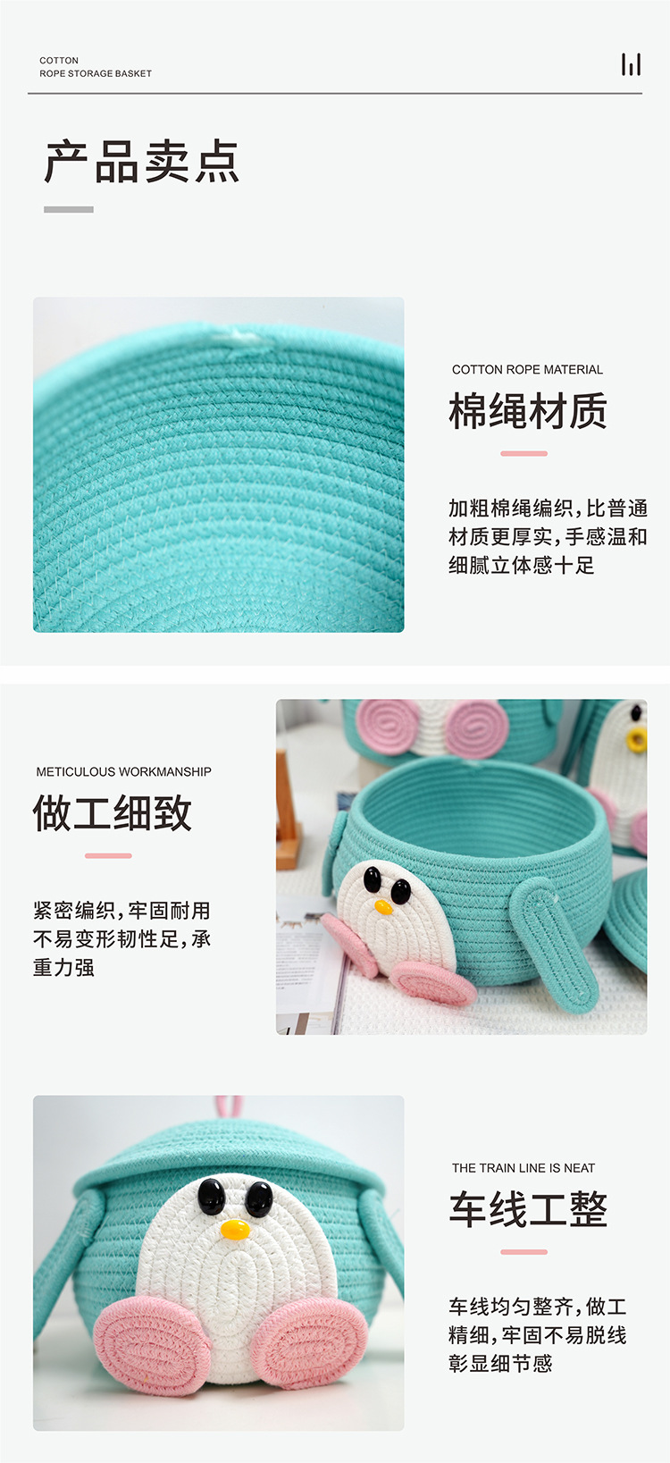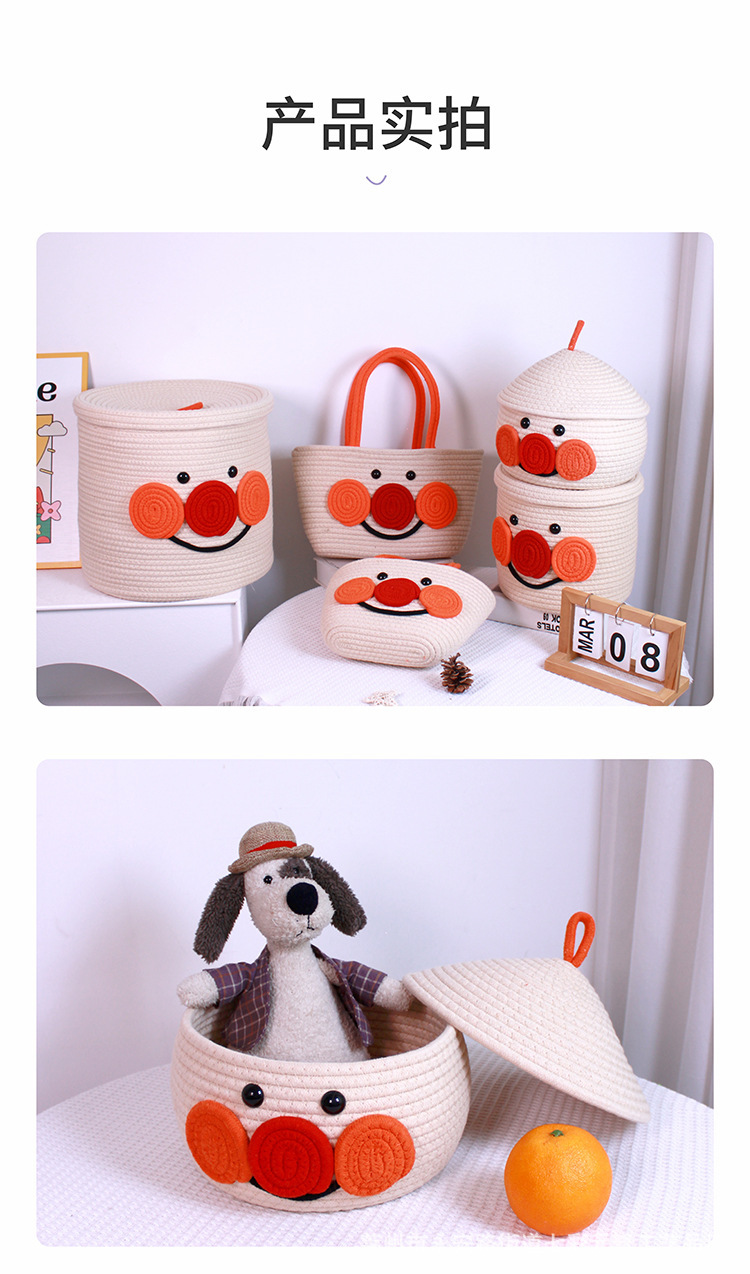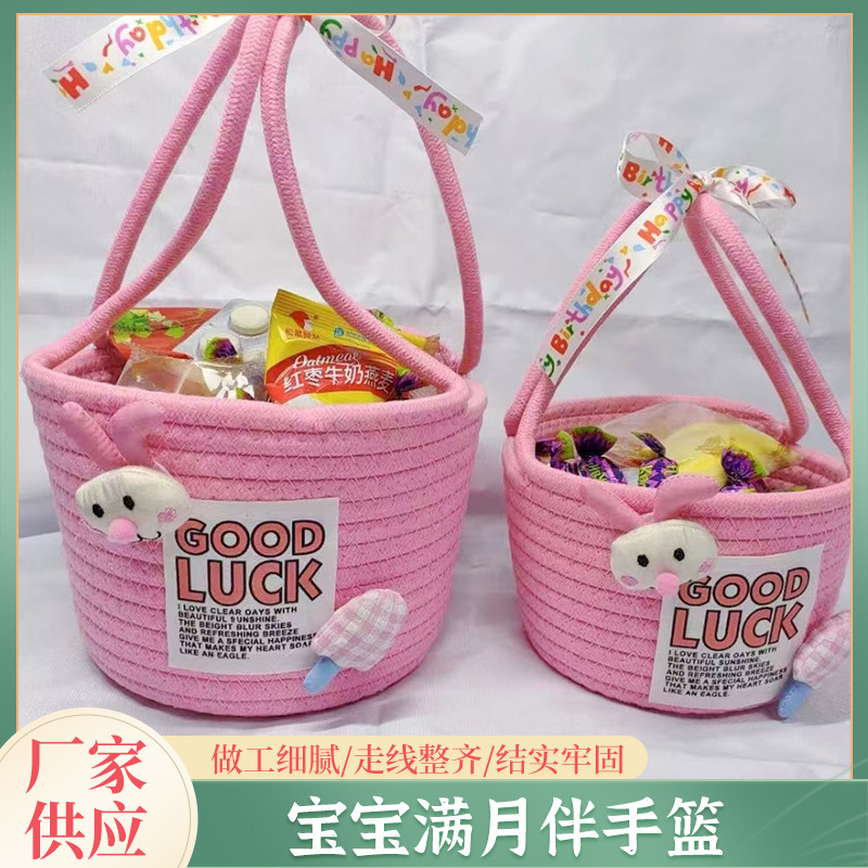 卡通收纳筐宝宝满月伴手礼收纳篮百日宴桌面礼盒批发棉绳收纳筐