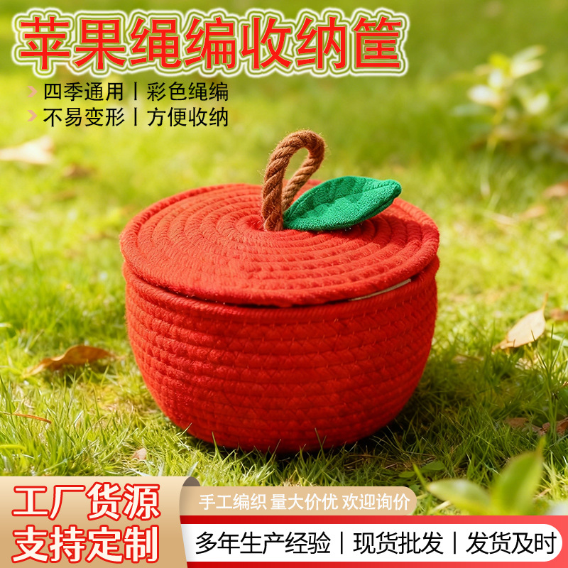 可爱桌面收纳盒宝宝满月置物篮多巴胺办公收纳筐棉线编织储物篮
