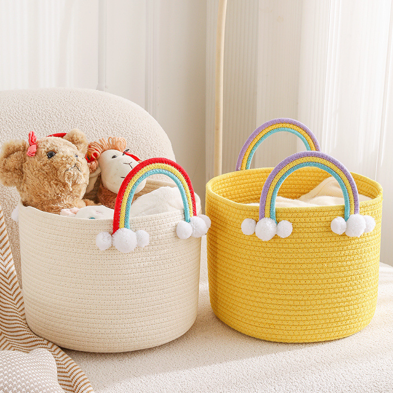 Ins民宿綿縄洗濯かご編み洗濯かご収納かごぬいぐるみ収納桶収納かご