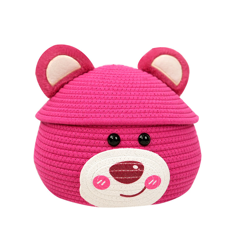 いちご熊蓋付き防塵収納かご綿紐手織り収納かごテーブル収納かご