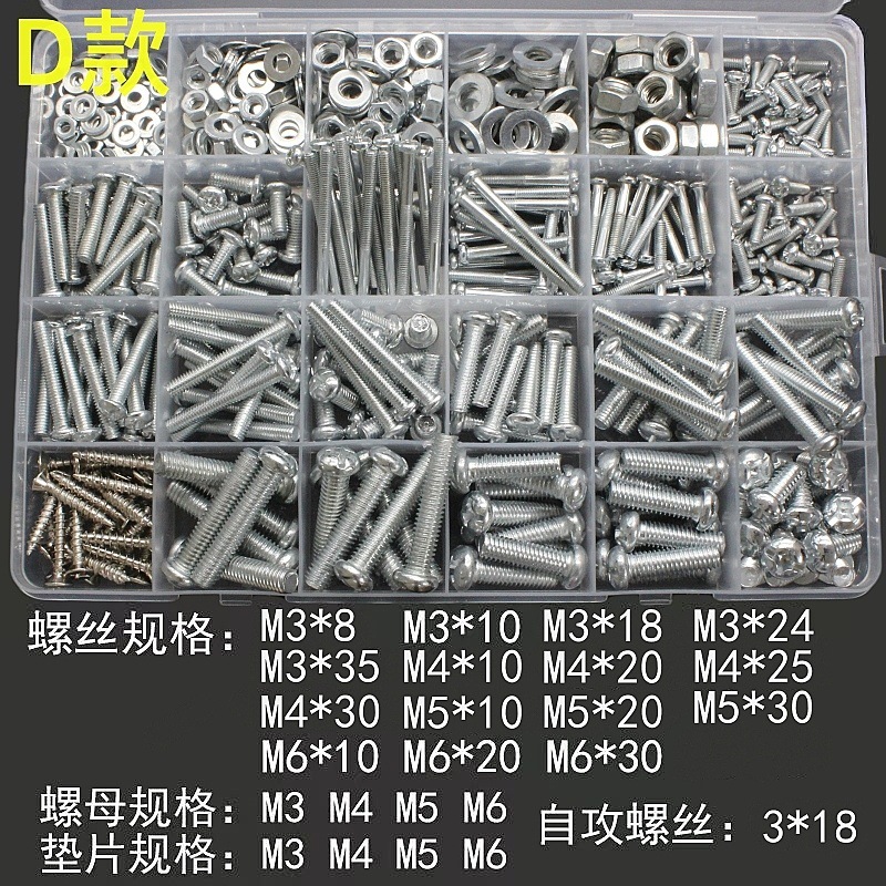 家用螺丝钉螺丝盒套装螺母螺帽螺钉垫片自攻螺丝套装M2M3M4M5M6