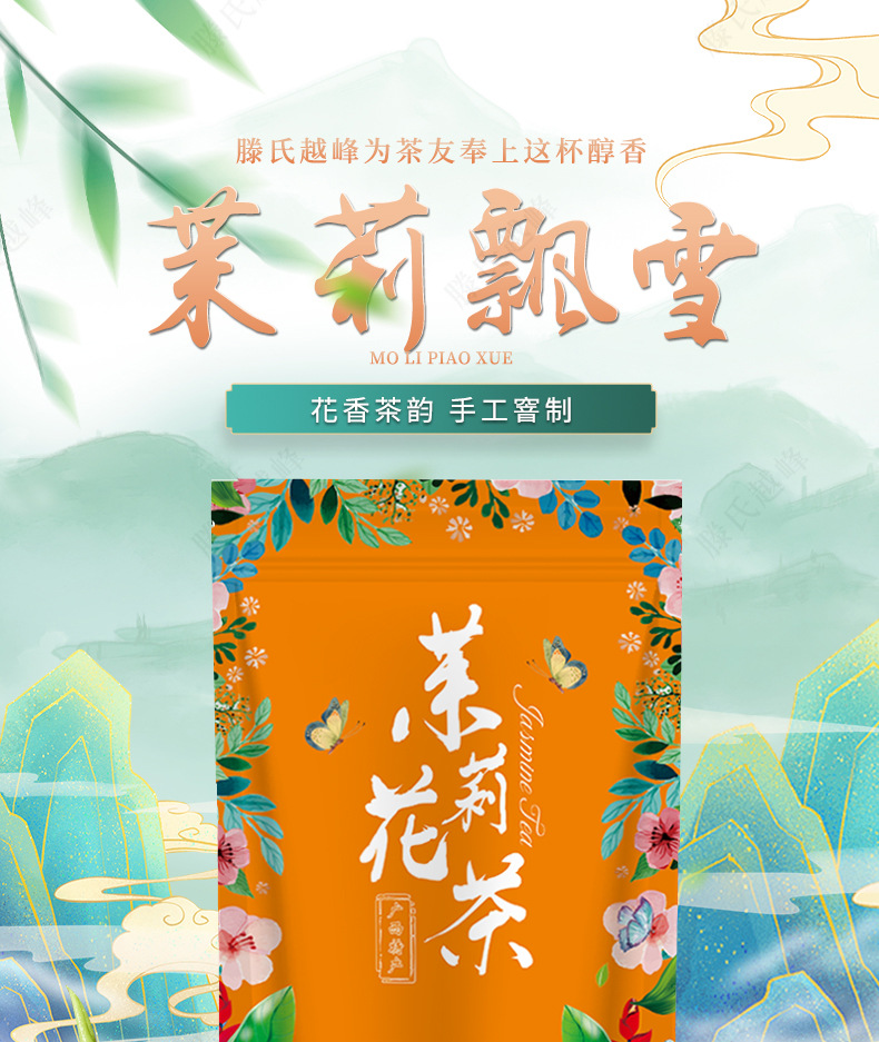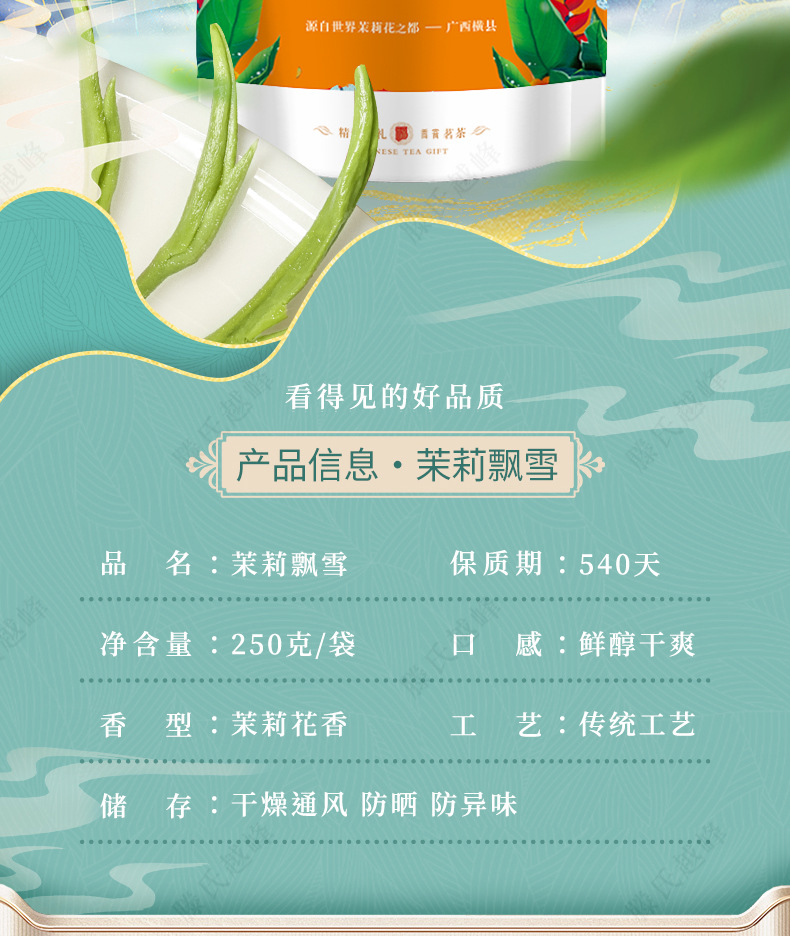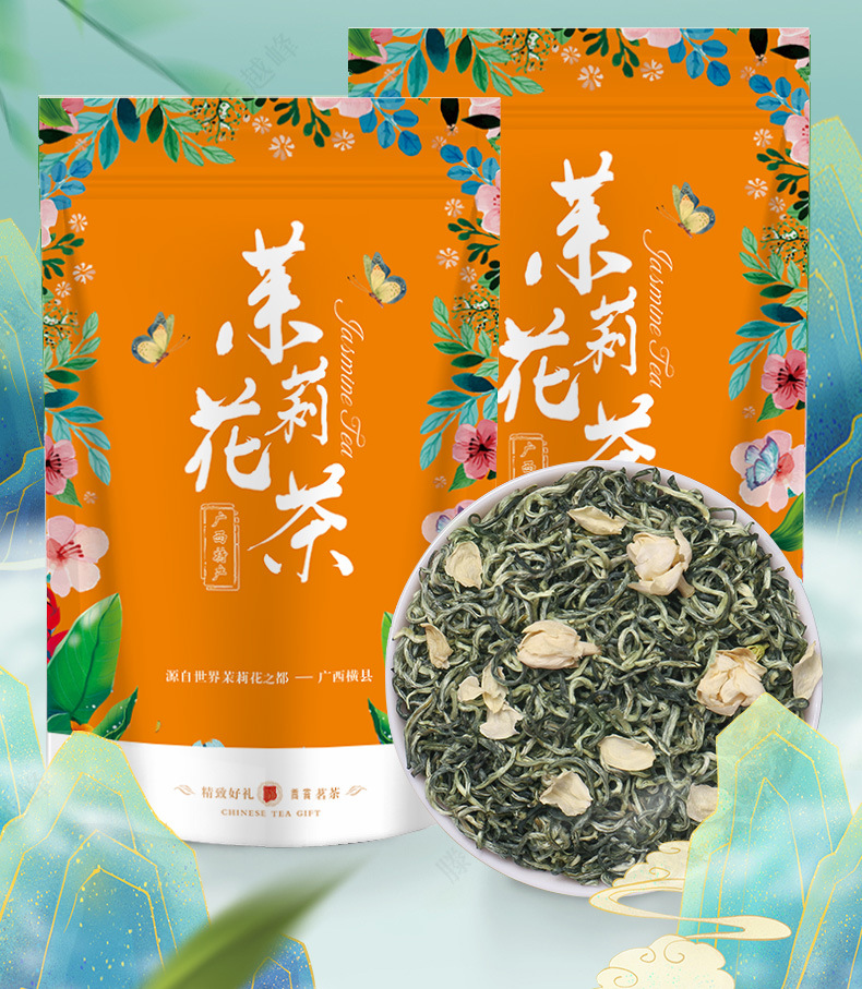 本物のお茶九窨一提茉莉飘雪茉莉花茶広西横県緑茶濃香タイプ卸売価格