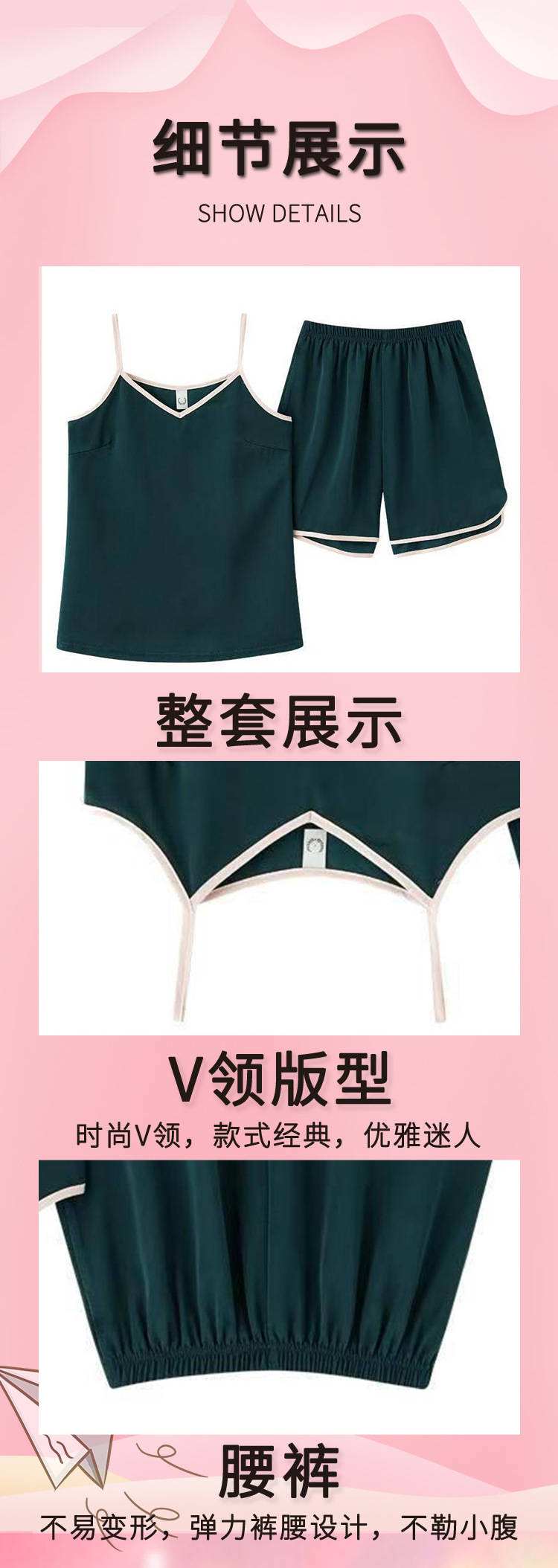 Vネックストラップパジャマ袖なし純色女性ゆるいホームウェア氷糸ベストパンツ薄いvネックストラップパジャマ