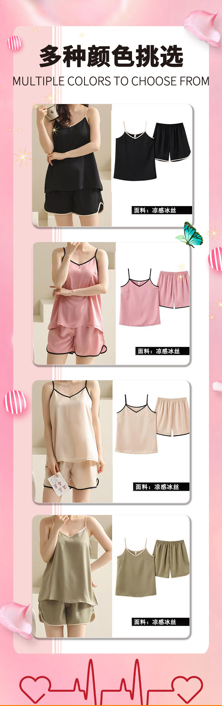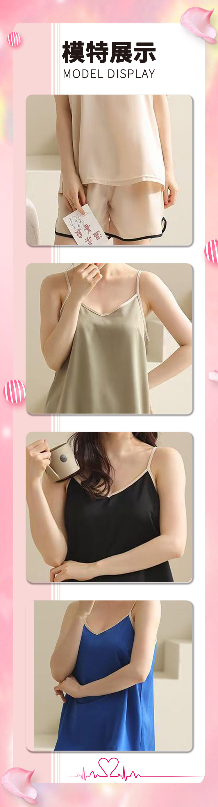 欧美女士家居服爱心印花吊带短裤套装坑条可外穿女士睡衣休闲套装