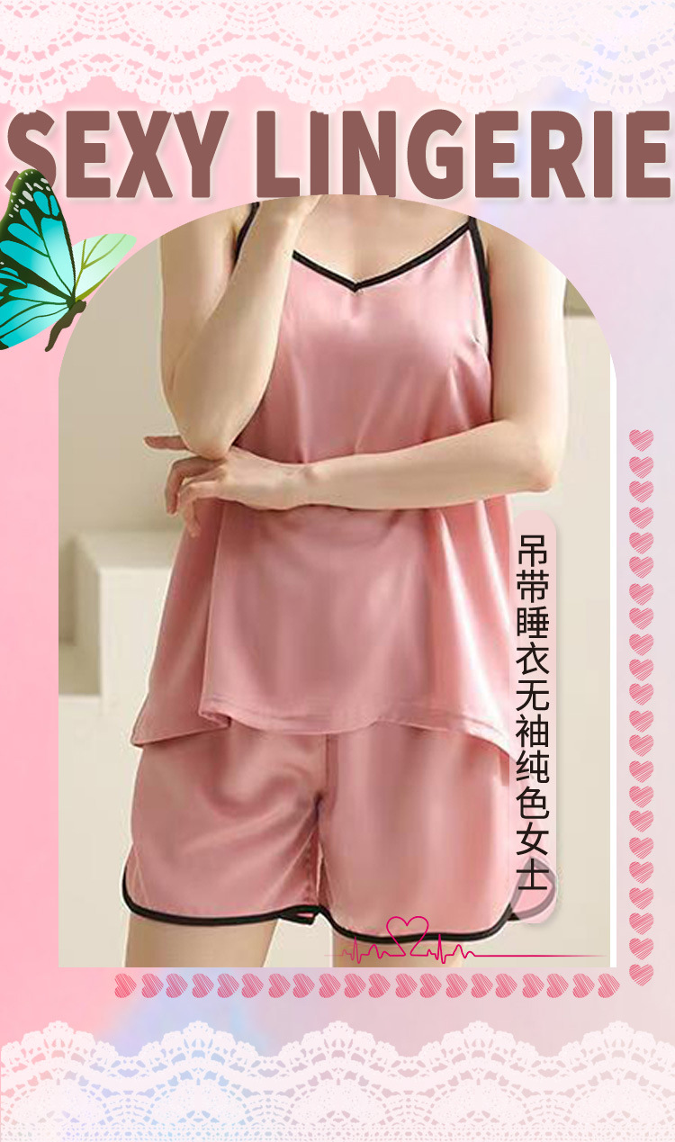 欧美风跨境女款时尚蕾丝花边休闲睡衣套装夏季舒适吊带短裤DT3926