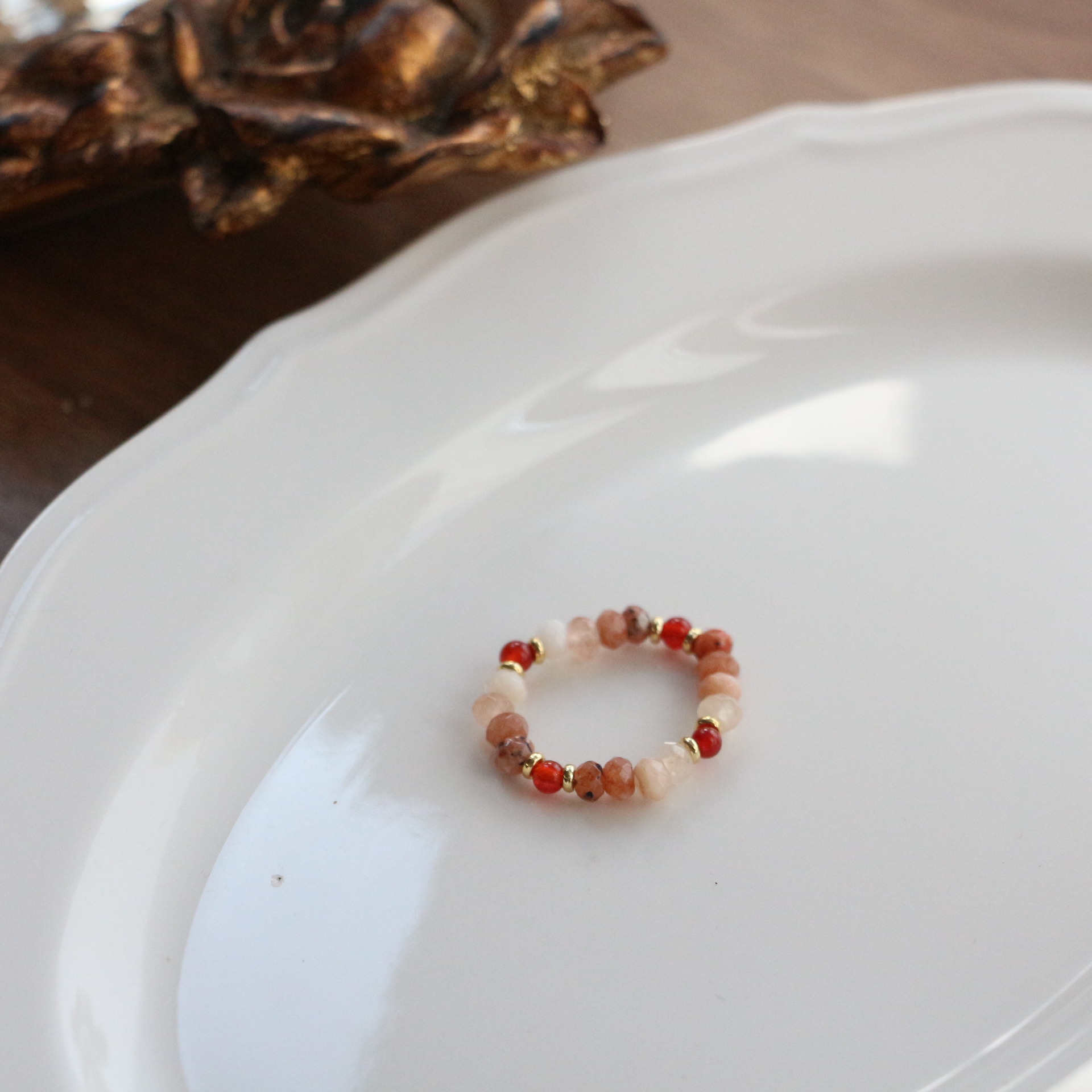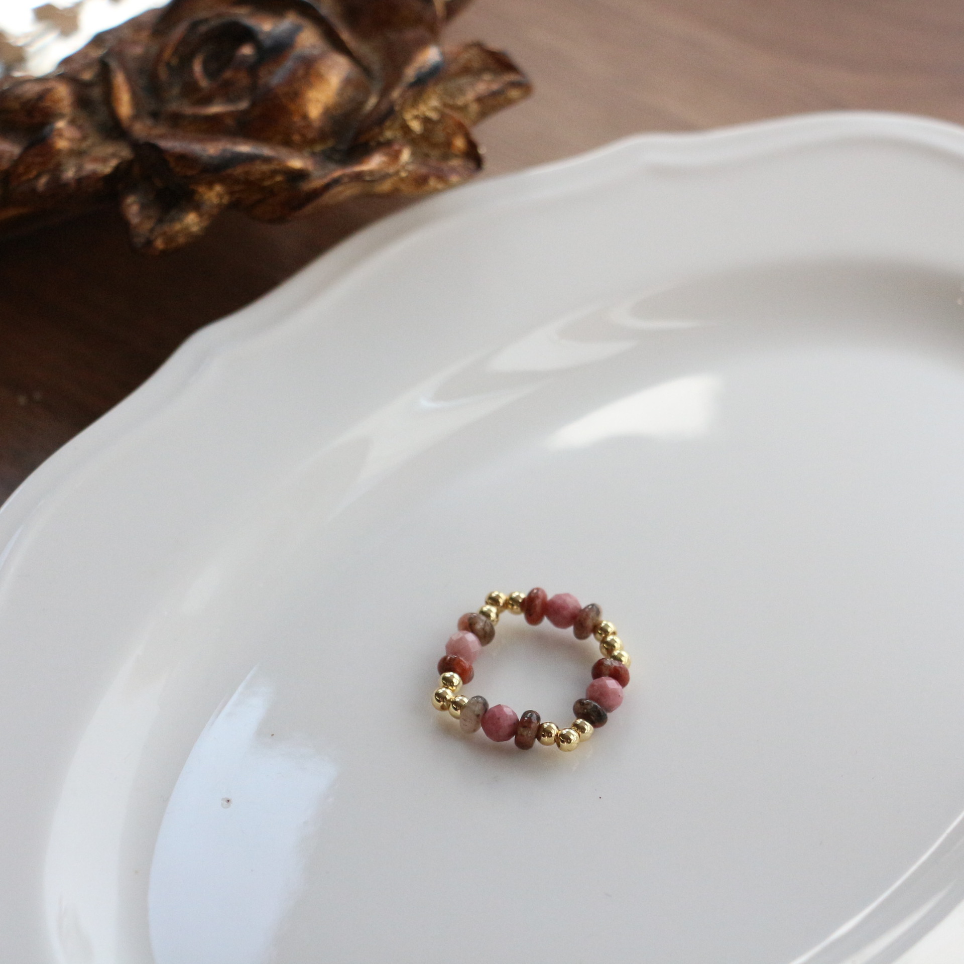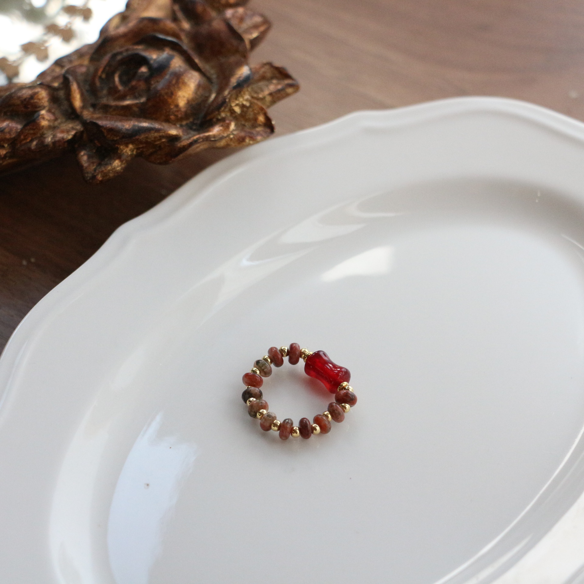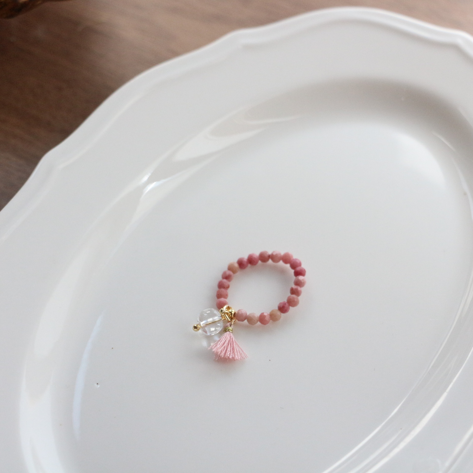 ホワイトクリスタルロードライトタッセルリング,赤瑪瑙ロードクロサイトリング,マルチカラーの天然石リング,ロードクロサイトリング,ストロベリークリスタルタッセルリング,レッドクォーツサンドリング,国産ライスビーズカラーリング,油絵石リング