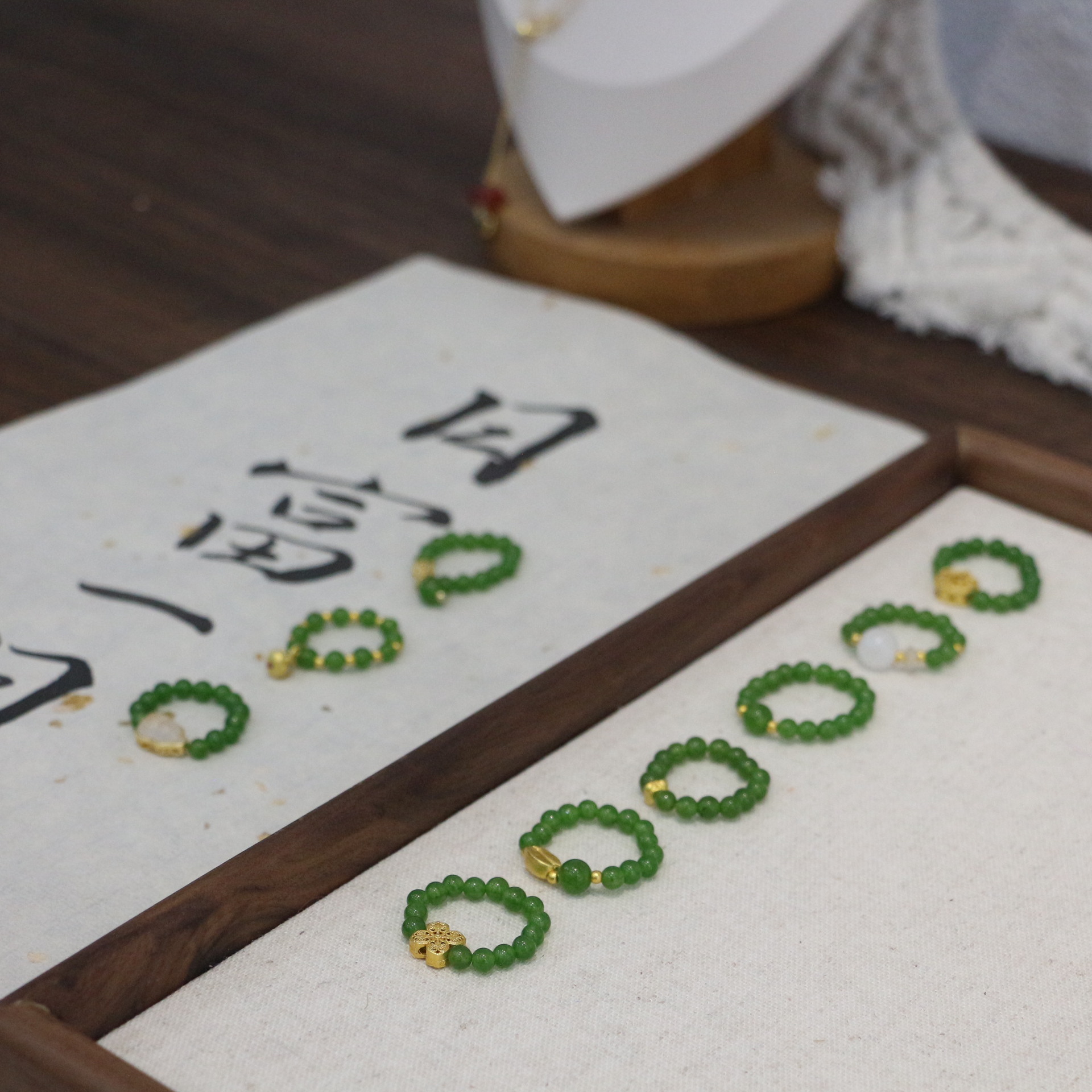 民族風小衆天然石指環食指戒新商品アクセサリー新中国風手作りビーズ弾力指輪