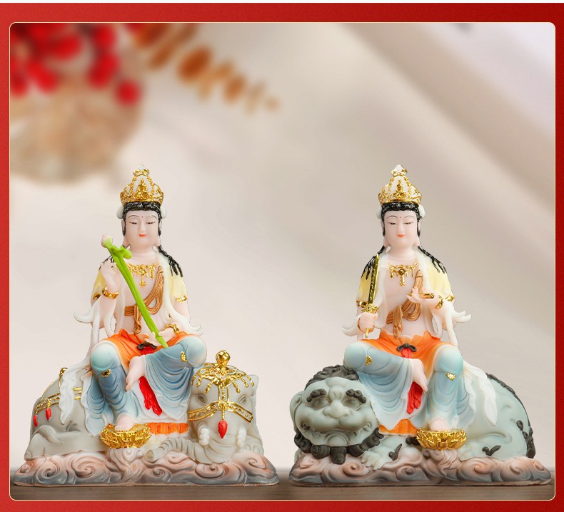普賢菩薩の神像樹脂の置物華厳三聖仏像仏堂の礼仏家庭用室内の銅の工芸