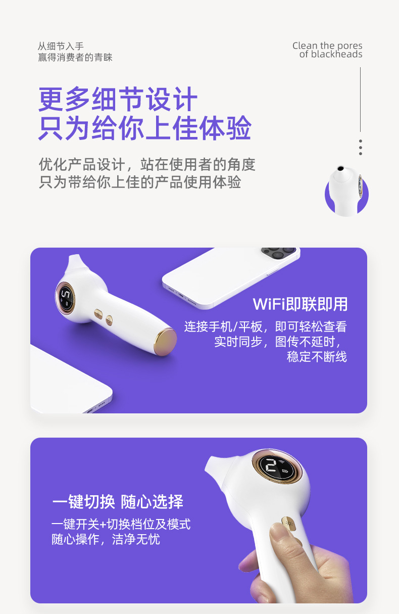 美容器手持ち充電ハイビジョン拡大可視スマートWiFi黒頭器毛穴クリーナー黒頭神器