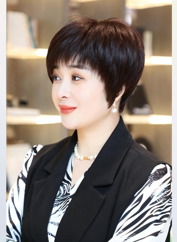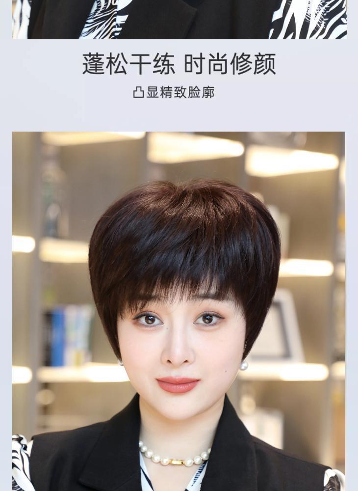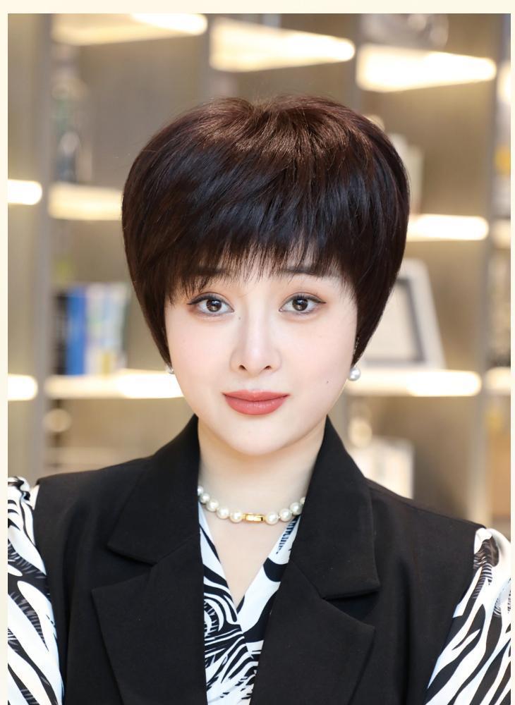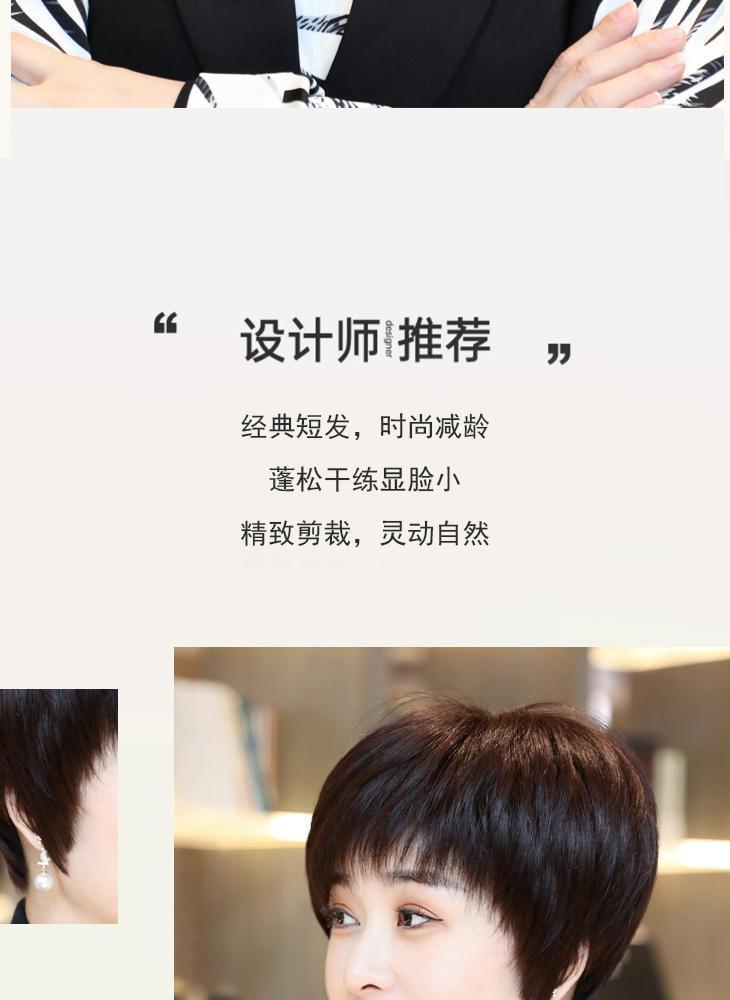 全手织全真发中老年短直发真发全头套假头发妈妈真人发丝发套透气