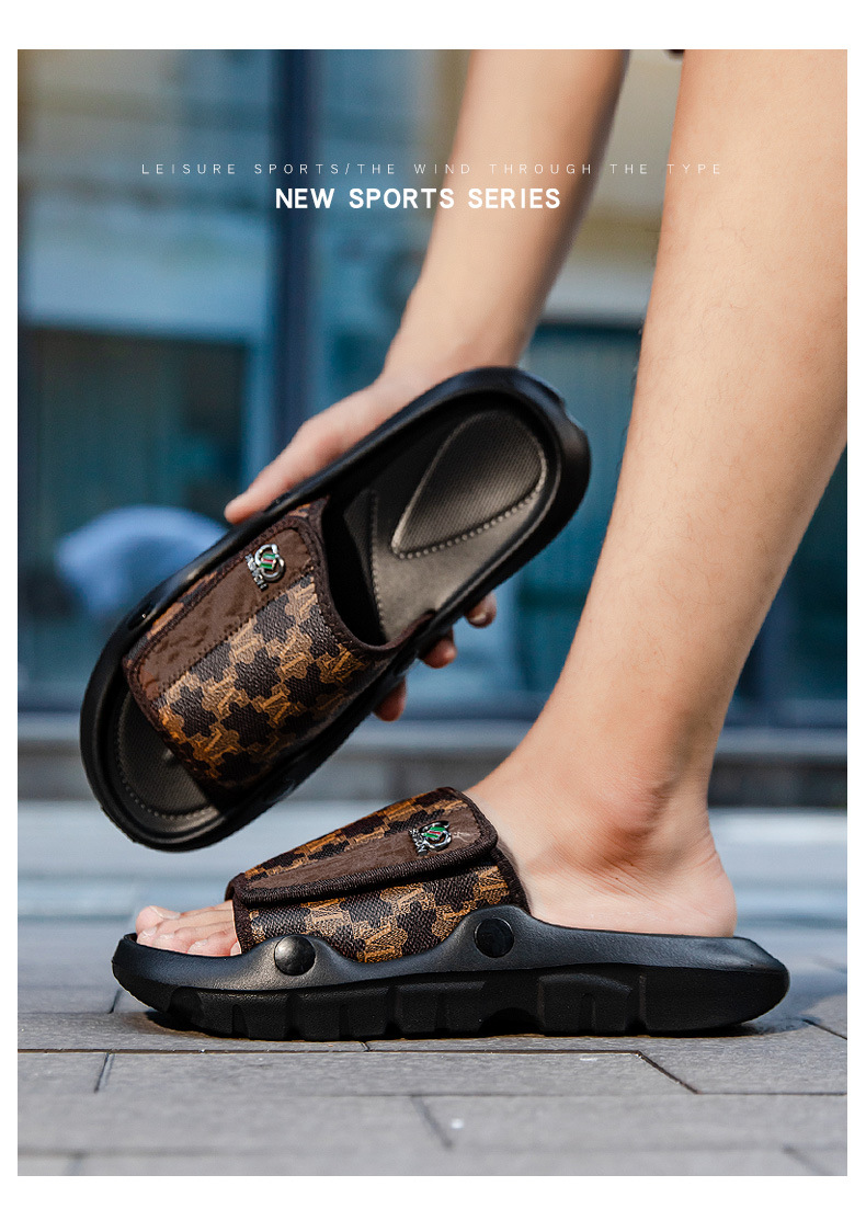 ヨーロッパの男性用夏用スリッパ、新しいメンズ滑り止め多用途アウトドアスリッパ、アメリカンスタイルのトレンディなビーチサンダル