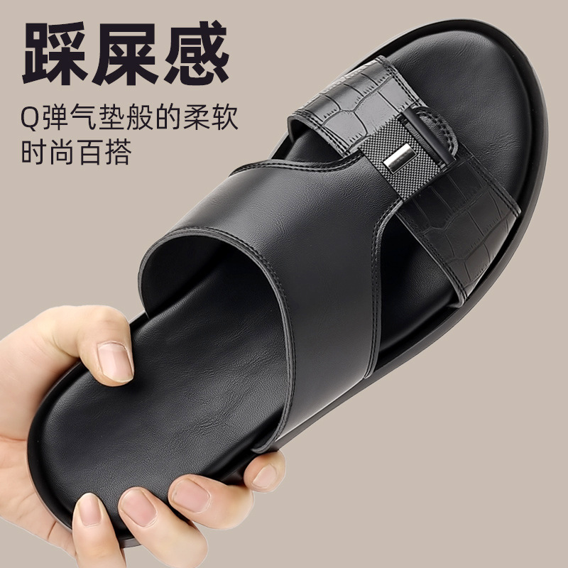夏2025スリッパ男性新型ファッションヨーロッパファッション真皮一字滑り止めサンダル爆金メーカー卸売り