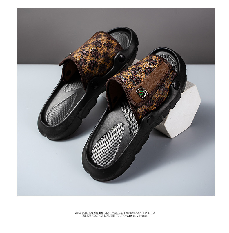 EVA 新しいクロスボーダーメンズサンダル夏デュアル目的ドライビングスリッパ革表面怠惰な靴トレンディな通気性ビーチシューズ