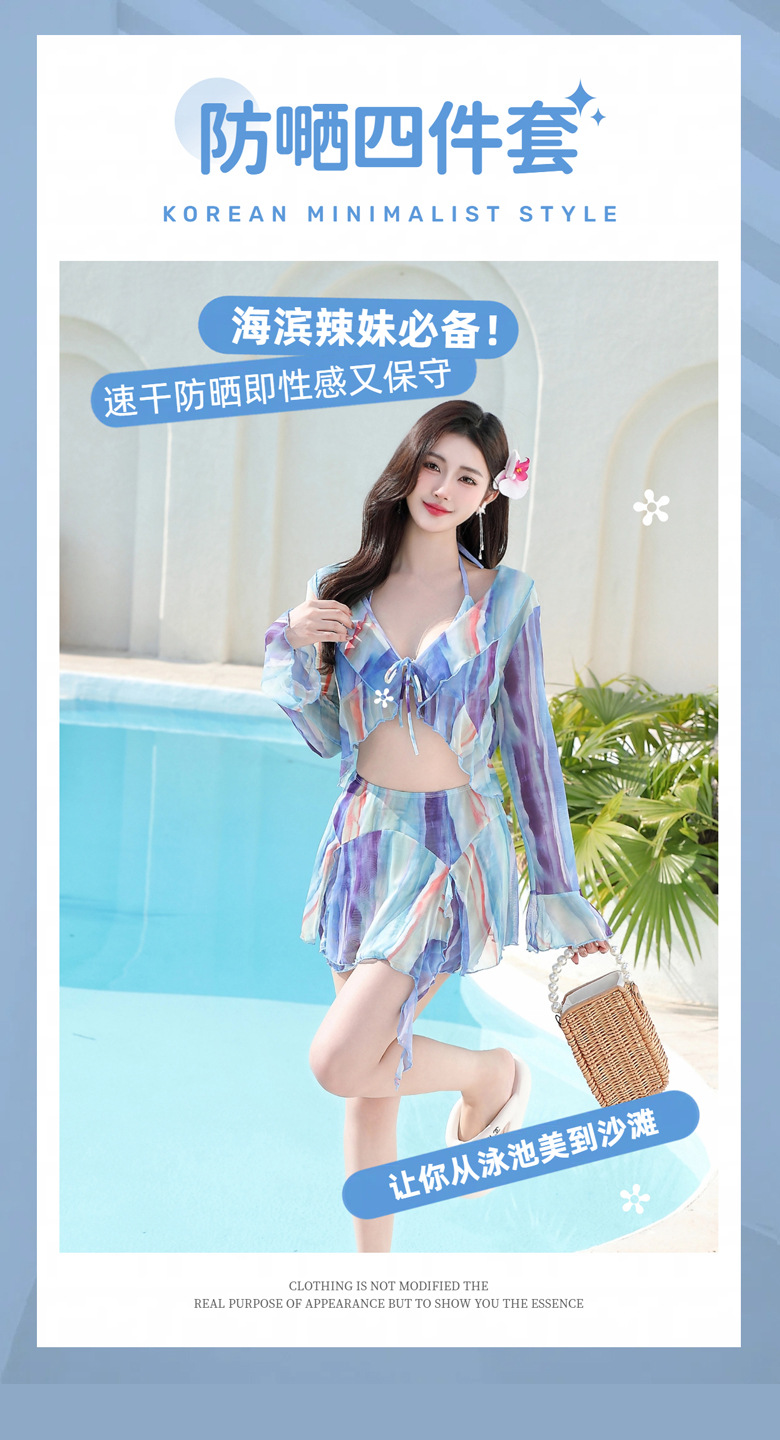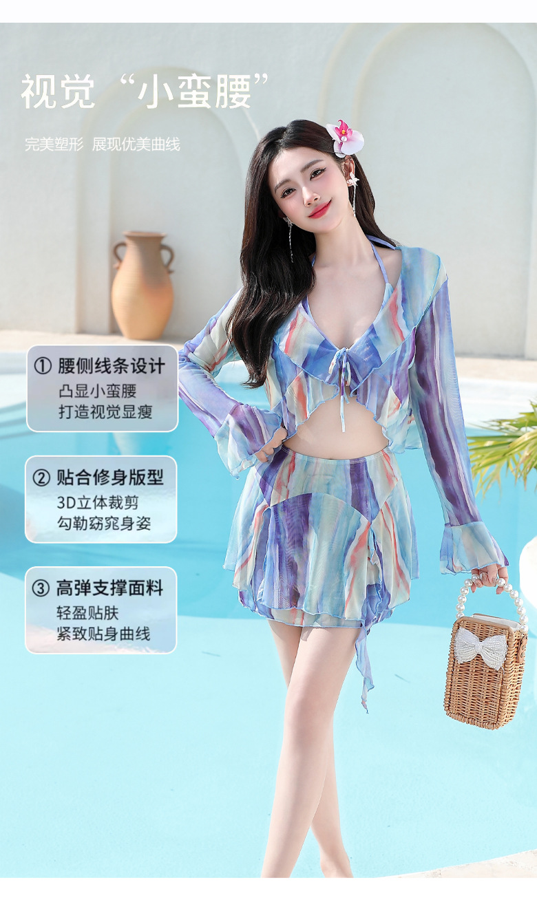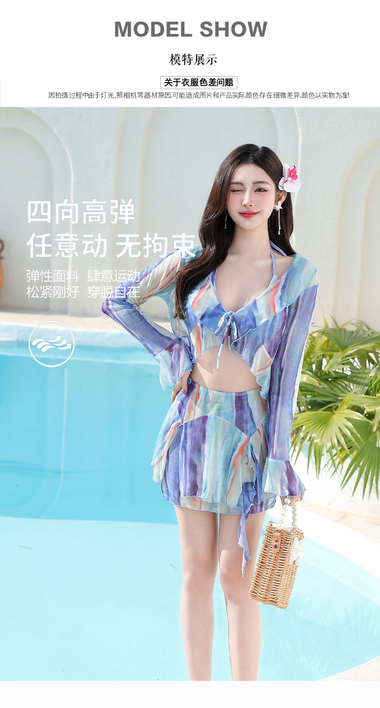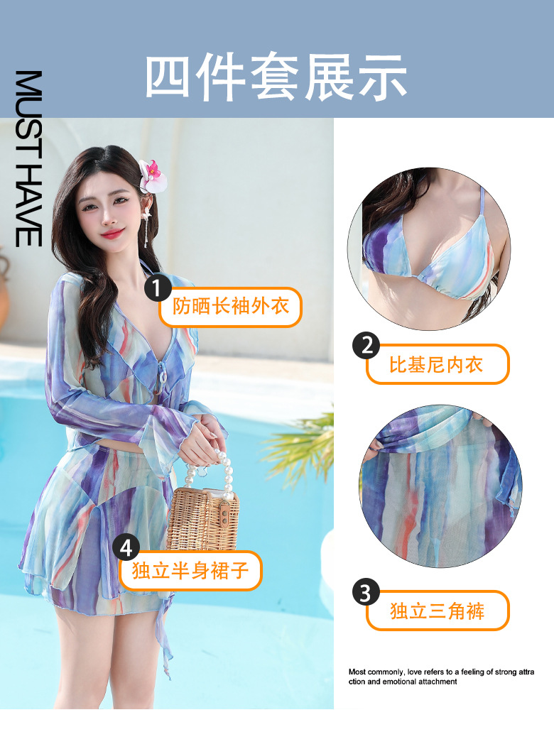 水着女性2025新型爆発セクシー高級ぼかし長袖4点セット痩せ速乾性日焼け止め温泉