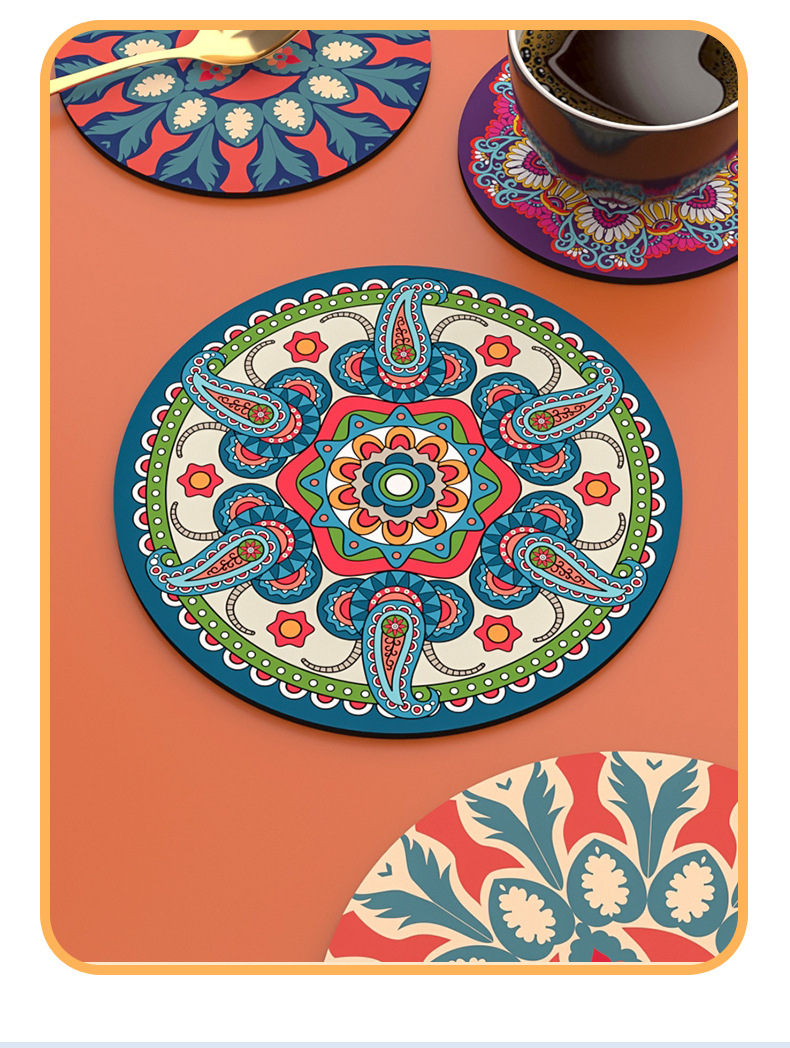 中世スタイルコースターヨーロッパレトロインシンプル断熱マットダイニングテーブルマットディッシュプレートコースター滑り止めと火傷防止印刷