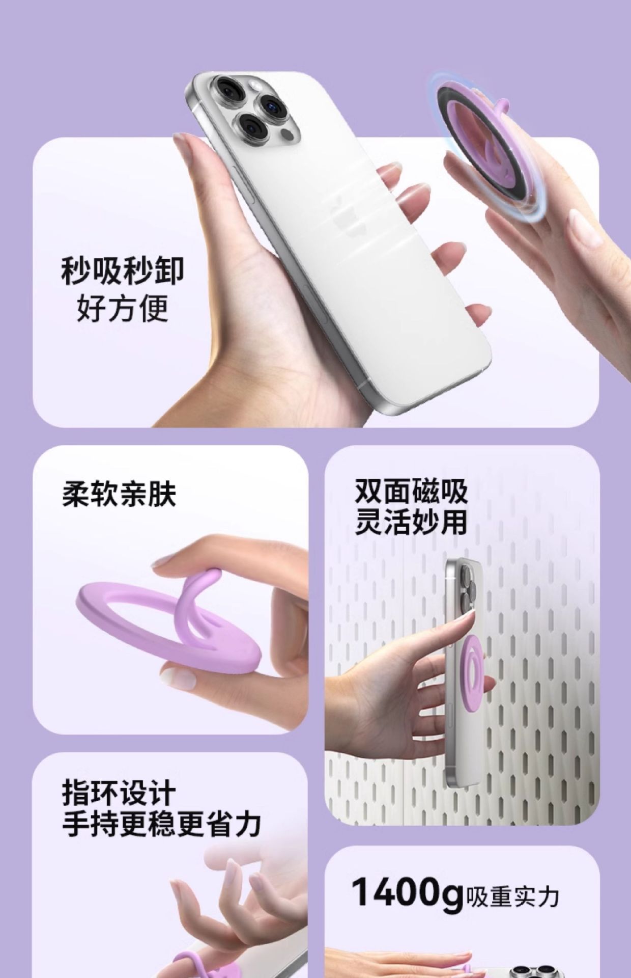跨境magsafe便携液态硅胶双面磁吸指环扣通用手机懒人磁吸支架