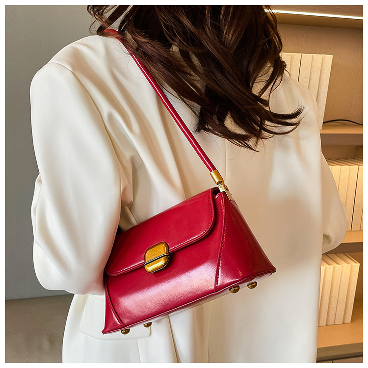 春の新型2025ファッション日常百合シングルショルダーバッグ女性法棒脇下バッグカバー式実用バッグ