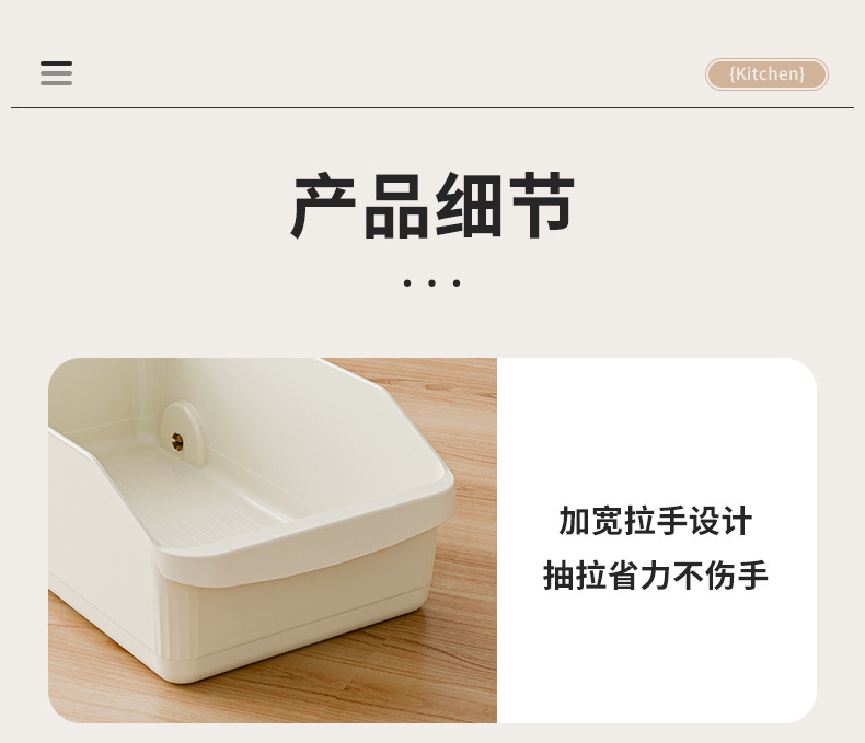 橱柜收纳盒抽屉式可伸缩桌面零食杂物厨房整理盒深柜直角储物盒子