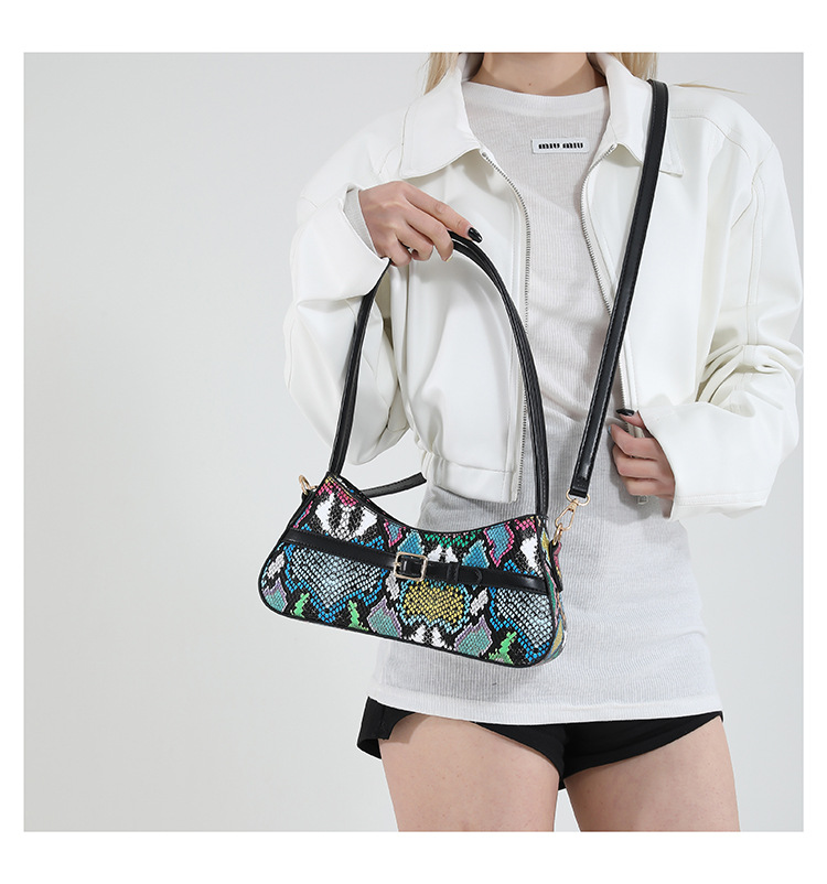 2025新型春ファッション百合片肩斜め脇下ハンドバッグ女性ベルト衝突色デザイン女性バッグ